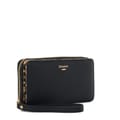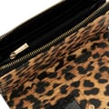 This stylish purse has been crafted in tan and features a leopard print lining. This sleek and compact design opens up to reveal a zip compartment to keep your essentials safe and a section to store your cards. Complete with our logo on the front in gold hardware the additional wristlet detail allows you to carry Krissyo hands free. Dimensions (W x L x D): 19 cm x 11 cm x 4 cm -