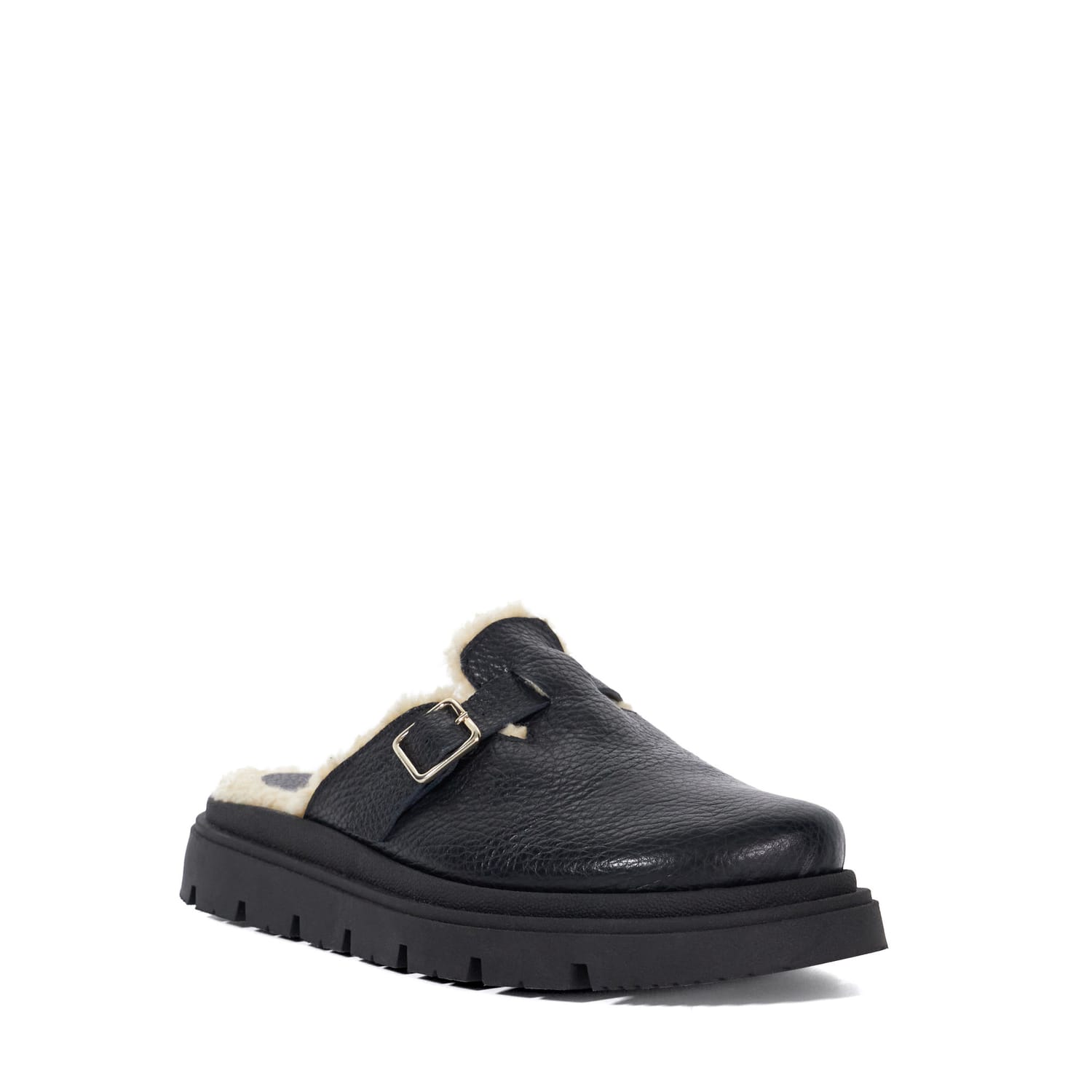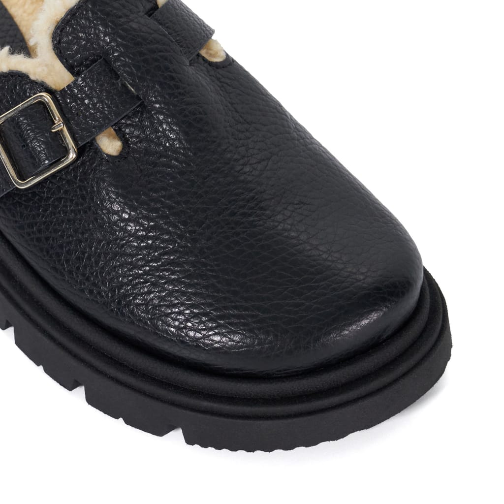 The ultimate off-duty style to take you on the coffee run or to the gym our Geene slip-on clogs have the added benefit of a faux shearling-lined insole for added comfort. Designed with a front buckle the addition of the light-weight track sole makes these the perfect addition to your weekend wardrobe. -