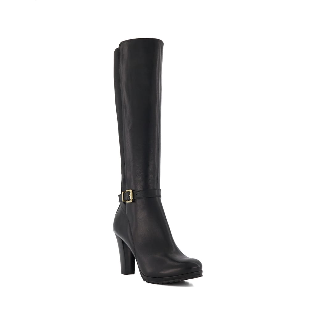 Refresh everyday styling with our knee-high boot Sareena. Crafted from the finest material this round-toed silhouette is detailed with a back pull tab and side buckle. Finished with a side zip this versatile design culminates with a cleated sole and wearable block heel. -