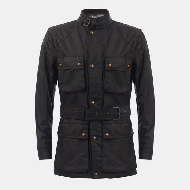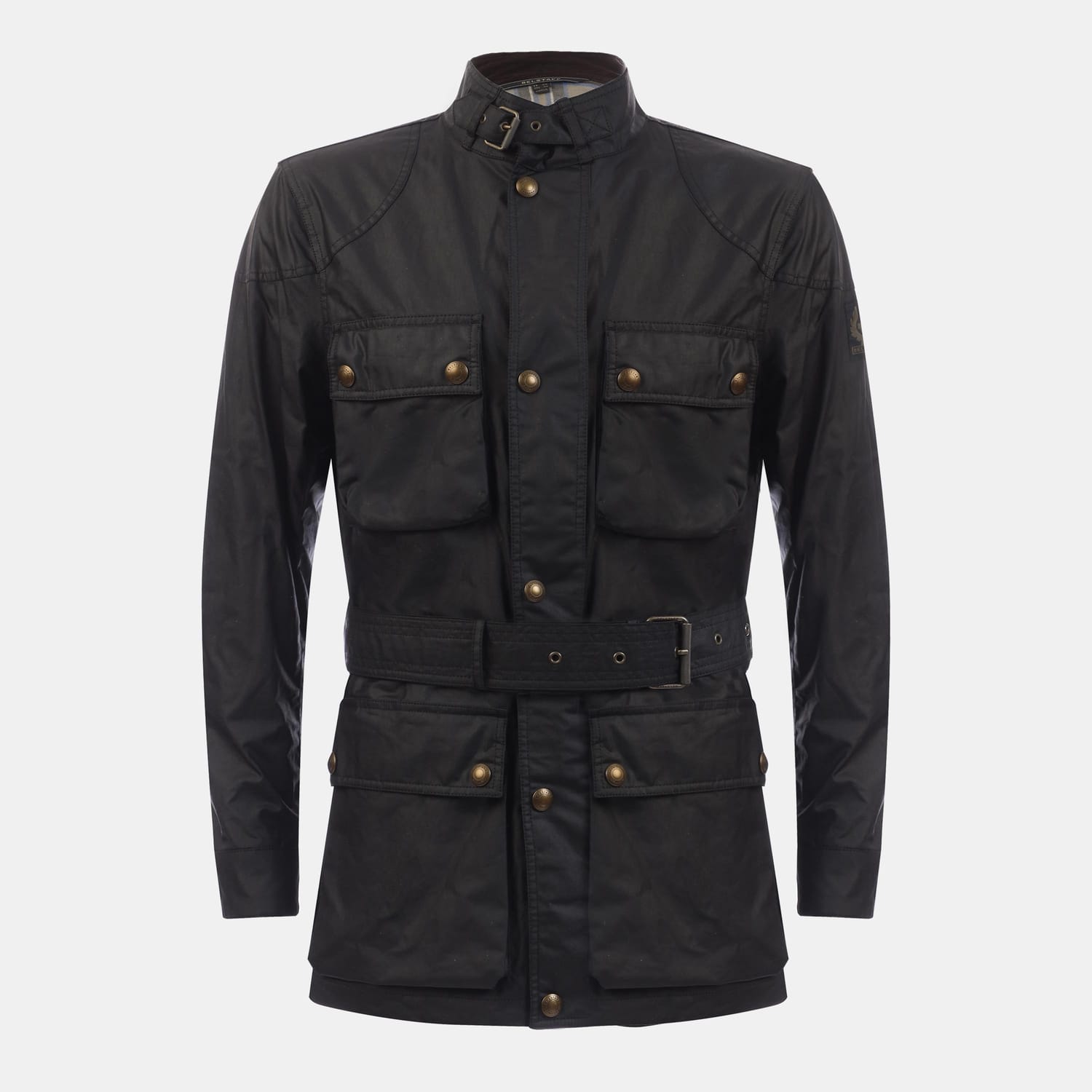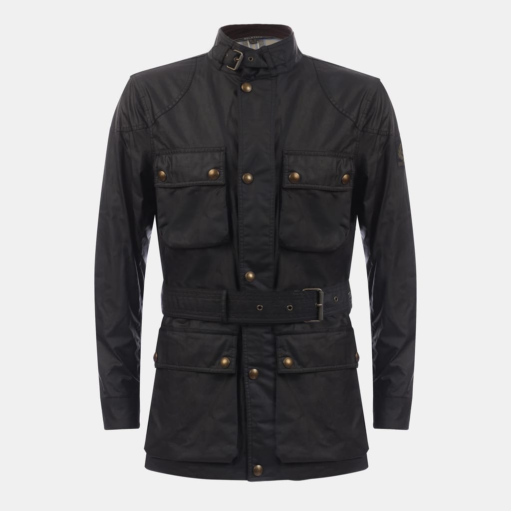 Buckle-adjusted collar. Centre front zip and snap placket. Four modern, storm proof bellows pockets with dual press stud closure. Signature tilted left chest pocket. Belstaff phoenix patch on left sleeve. Corduroy linings at the collar, cuffs and hem provide added comfort and resilience at high contact points. Cotton twill lining woven in the signature Belstaff checked pattern. Water-repellent and wind-repellent. 6 oz. waxed cotton, with a unique blend of micro and technical waxes. Shell: 100% Cotton, Body Lining: 100% Cotton. Sleeve Lining: 55% Polyester, 45% Viscose/Rayon. -