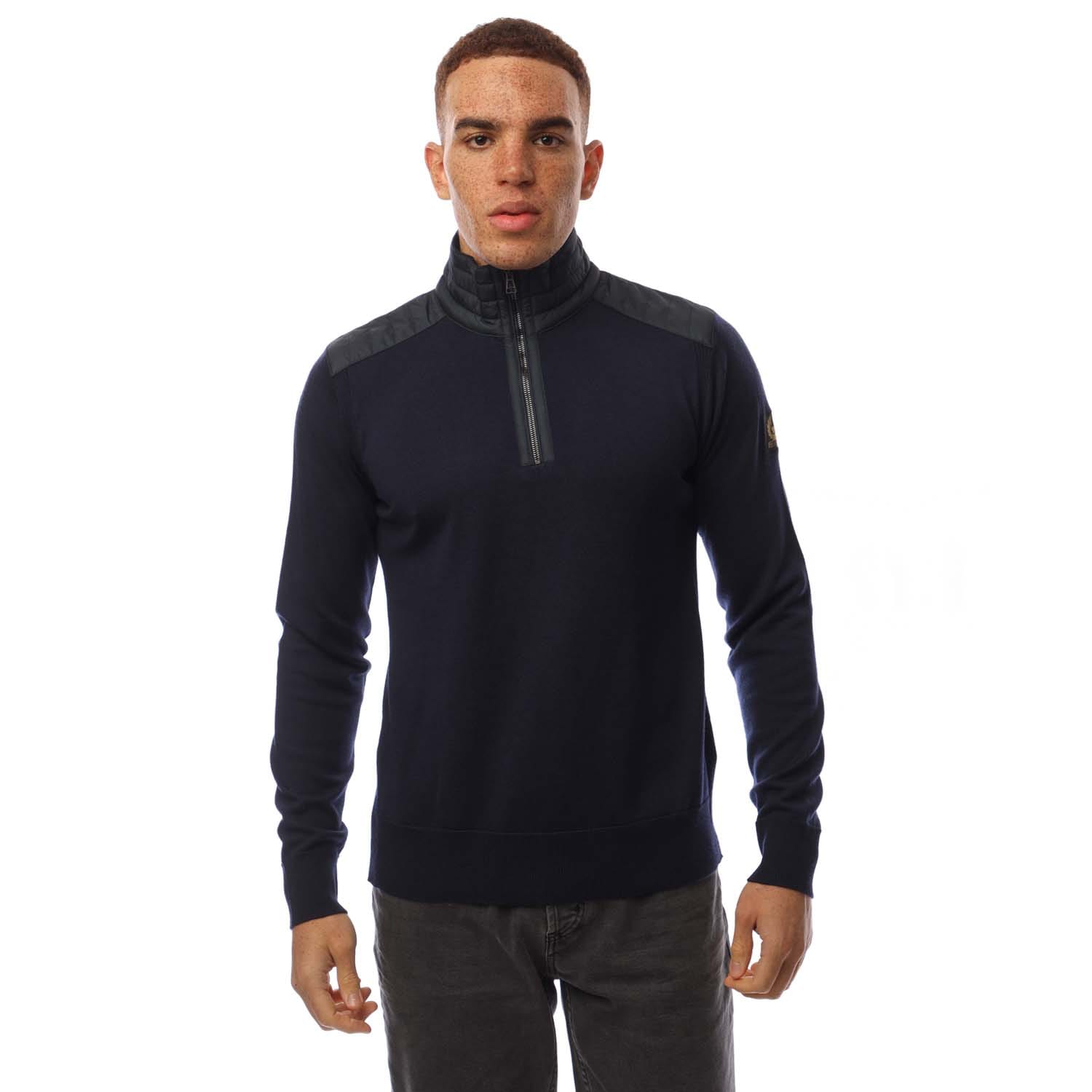 Mens Belstaff Kilmington ¼ Zip Sweater in navy.