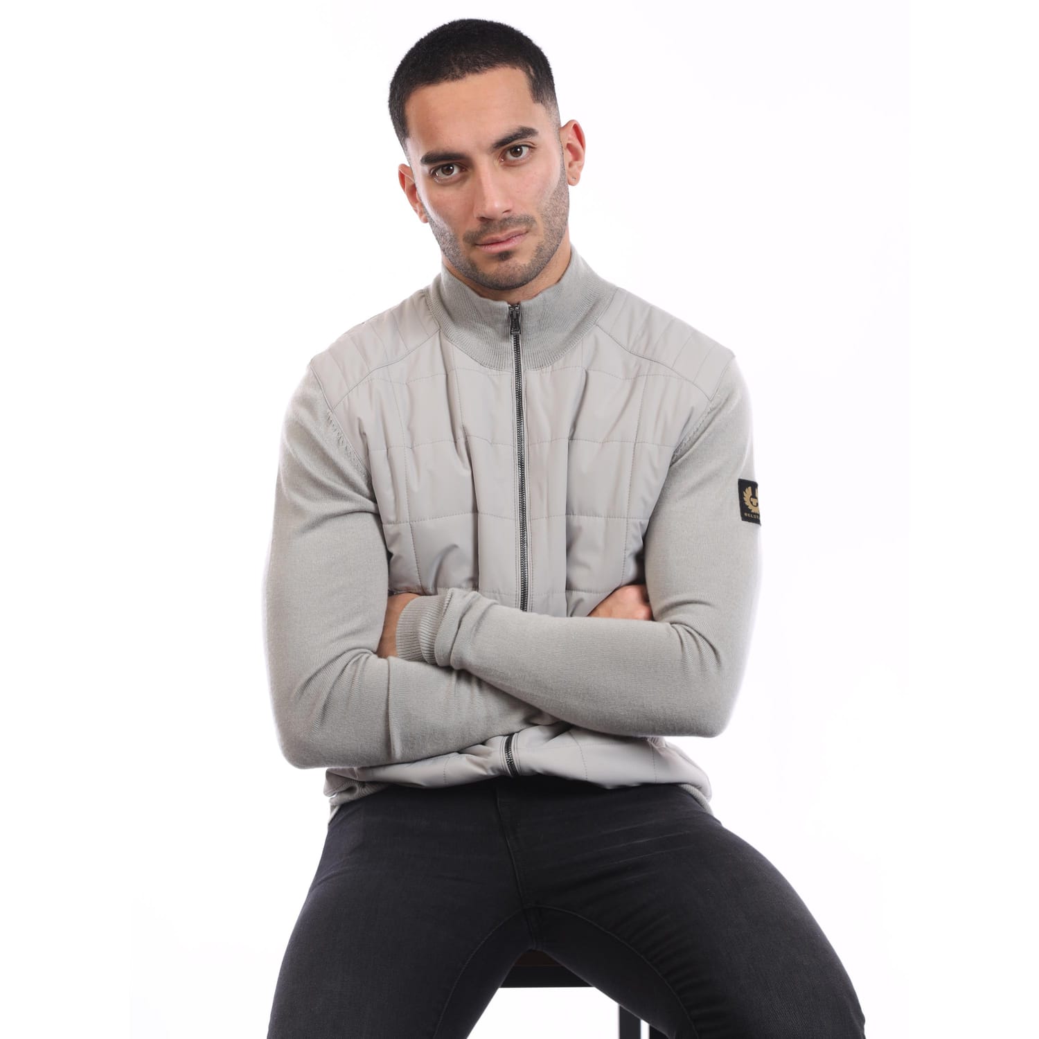 Mens Belstaff Kelbrook Zip Cardigan in chrome grey.
