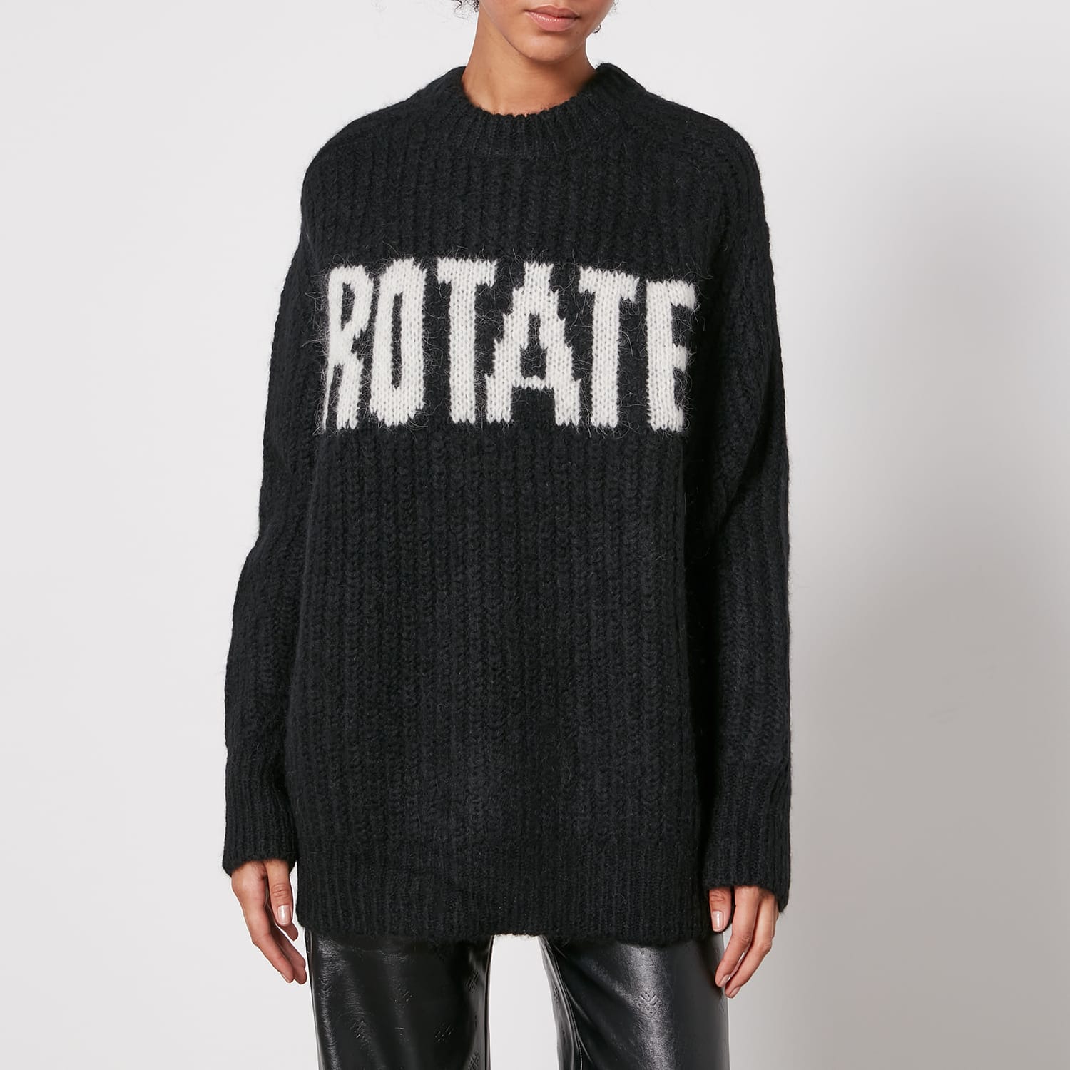 Ribbed crewneck. Dropped shoulders. Ribbed cuffs and hem. ROTATE logo across the chest. Chunky knit texture. Relaxed fit. -