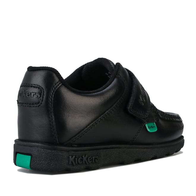 Boys Kickers Fragma Lo Strap Leather Shoes in Black
