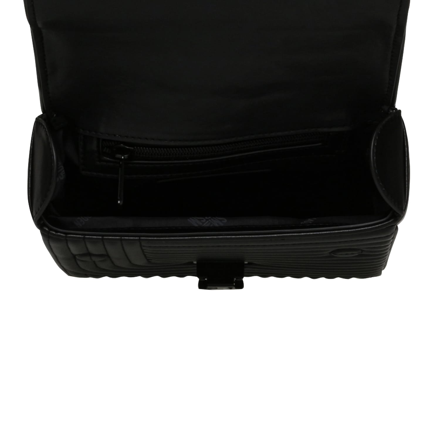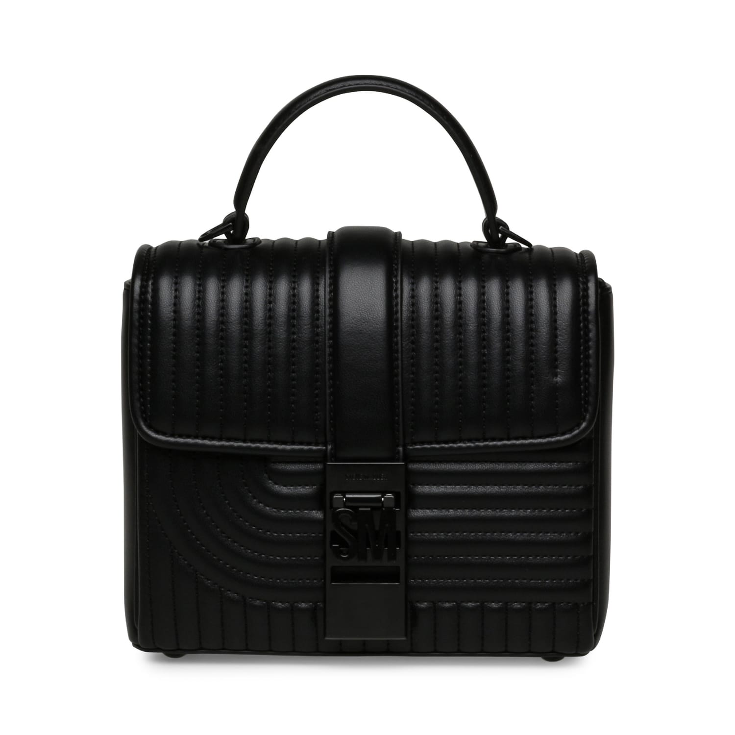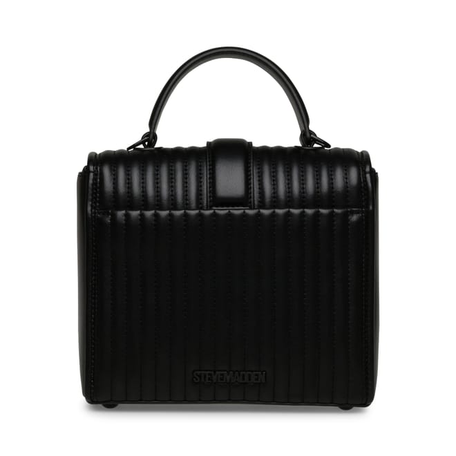 Fold-over flap with a clasp closure. Chain and a removable, adjustable faux leather strap. Quilted crossbody bag with a top handle. Synthetic materials with a faux leather composition. -
