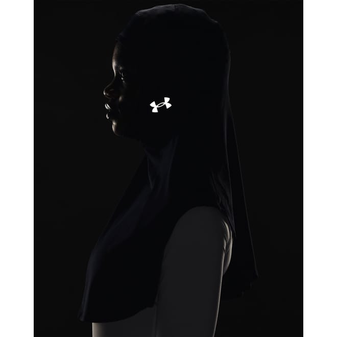 Made from super-soft, smooth fabric with a unique hex-shaped mesh pattern for ultimate breathability. It features a contoured front panel and extended length for modesty coverage that is designed to stay in place and prevent slippage during activity.The construction includes smooth, chafe-free flatlock seams. The hijab is designed with built-in access for headphones. -
