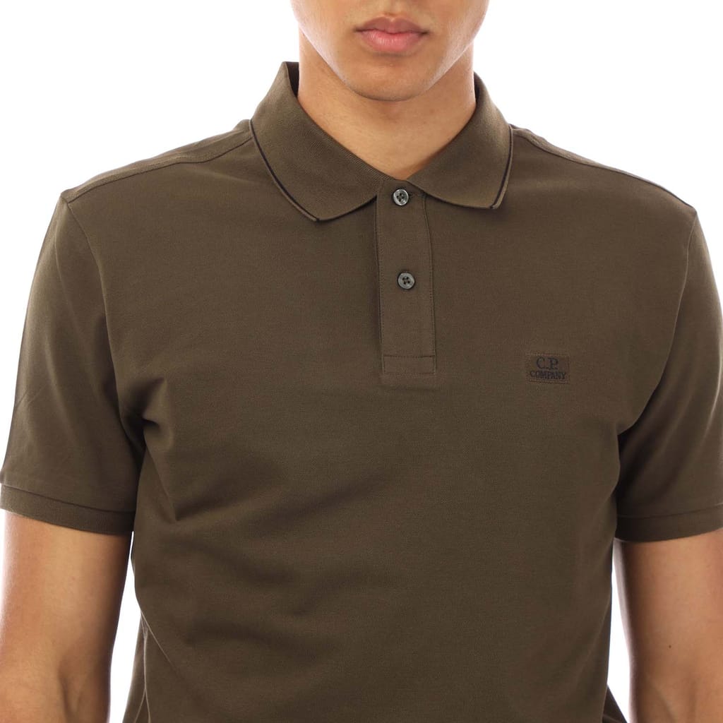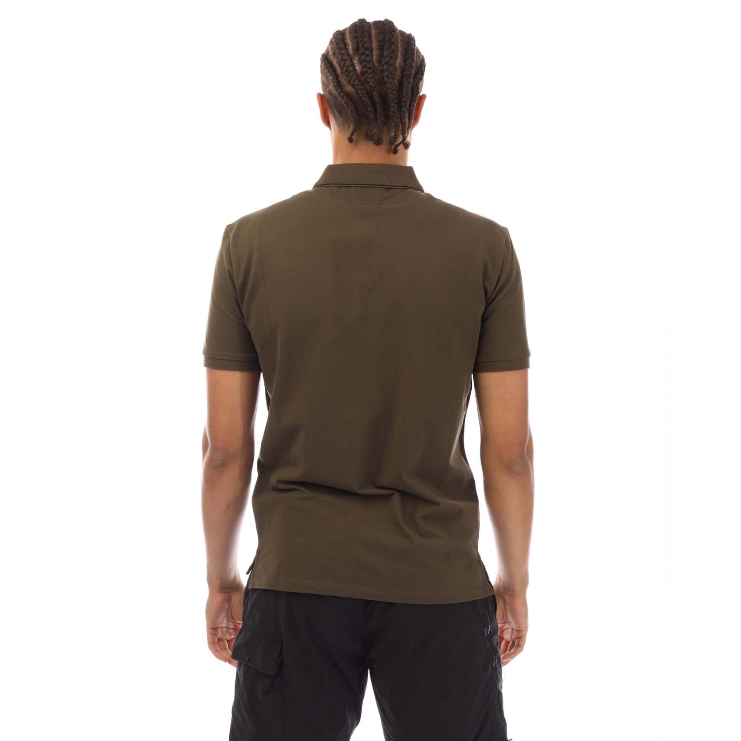 Mens C.P. Company Stretch Piquet Logo Polo Shirt in green.