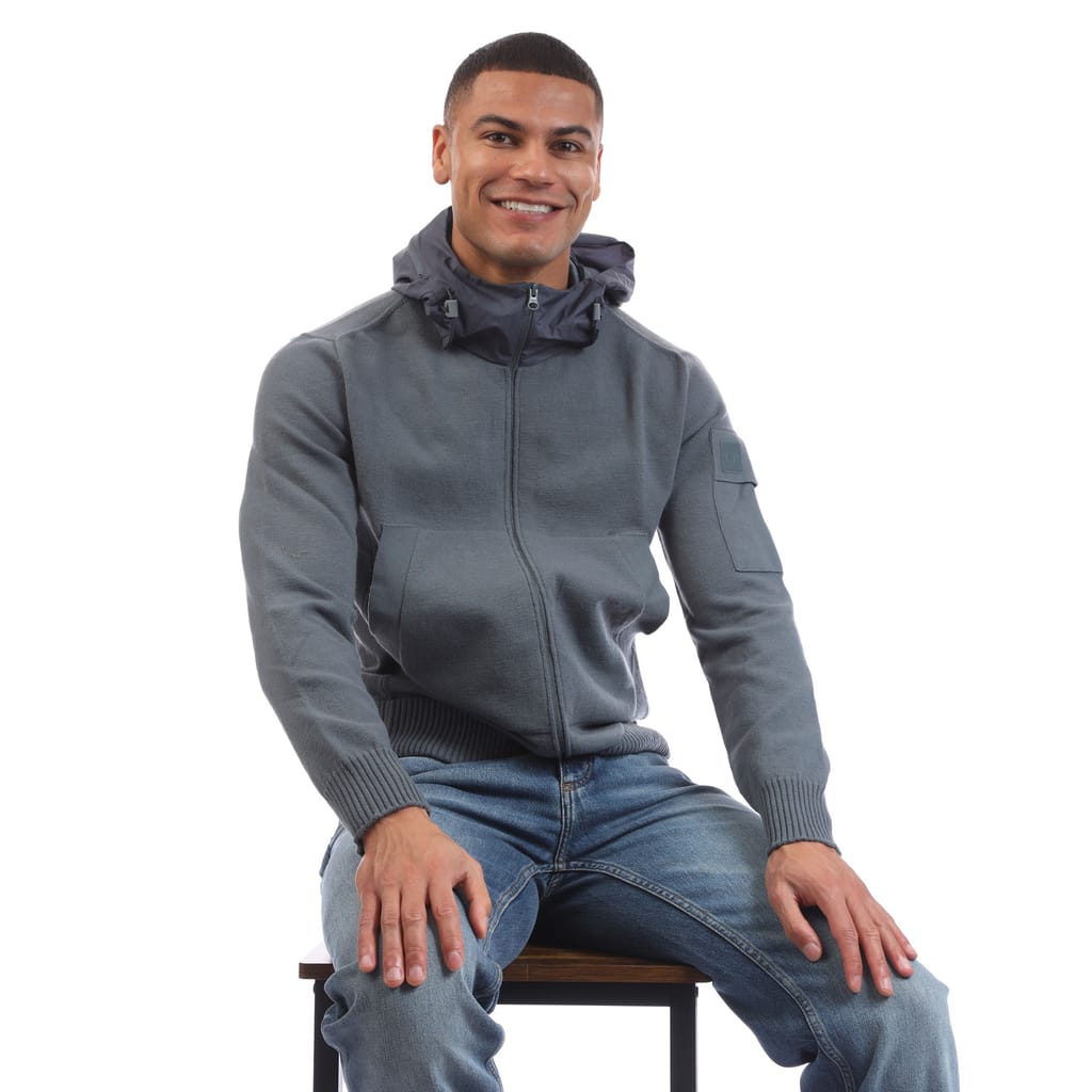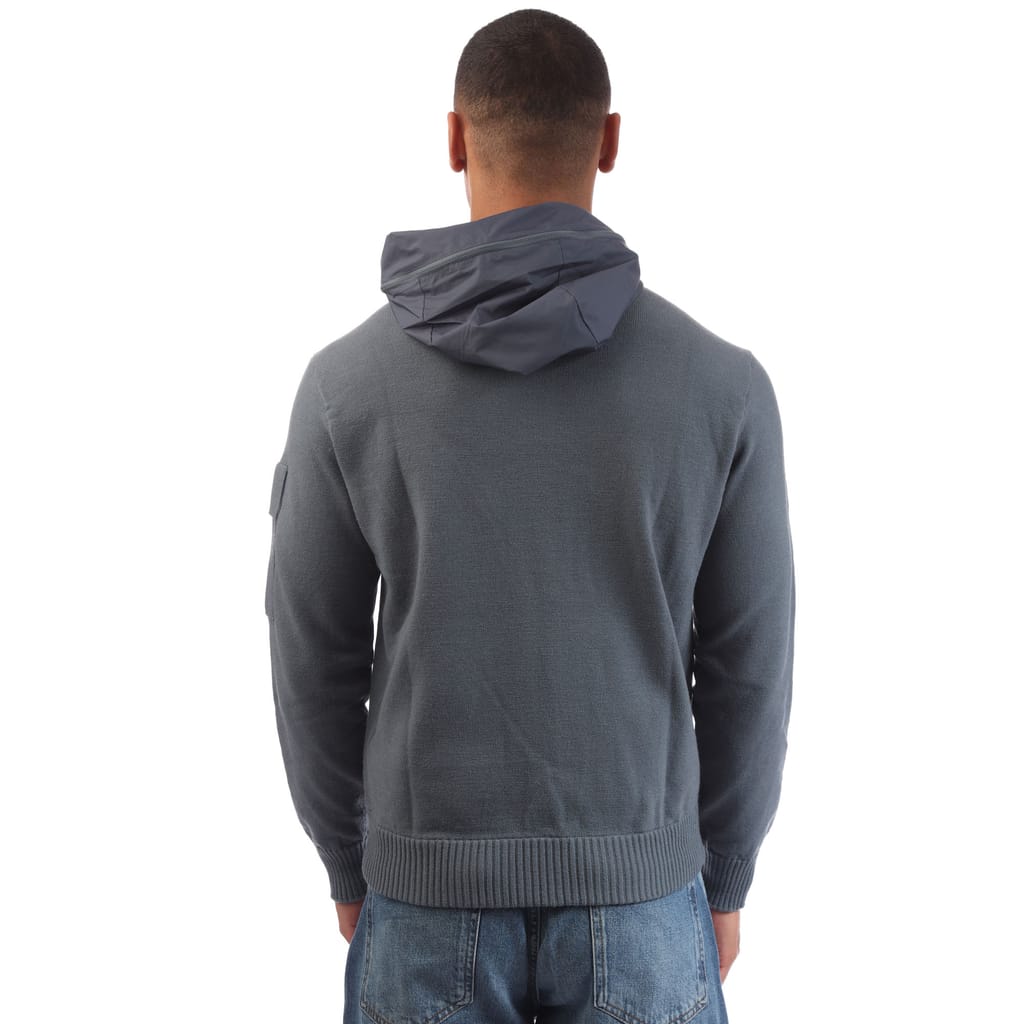 Mens C.P. Company Extrafine Merino Wool Full Zip Hoodie in blue.
