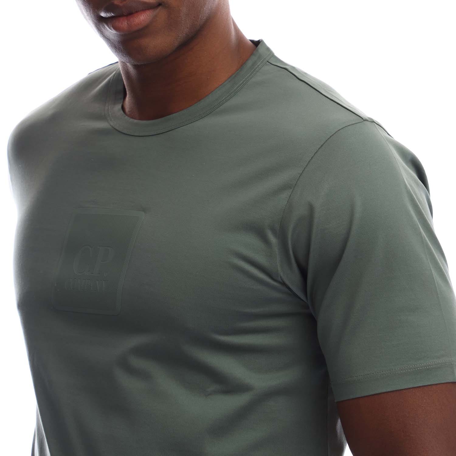 Mens C.P. Company Metropolis Series Mercerized Jersey Badge T-Shirt in vibrant green.
