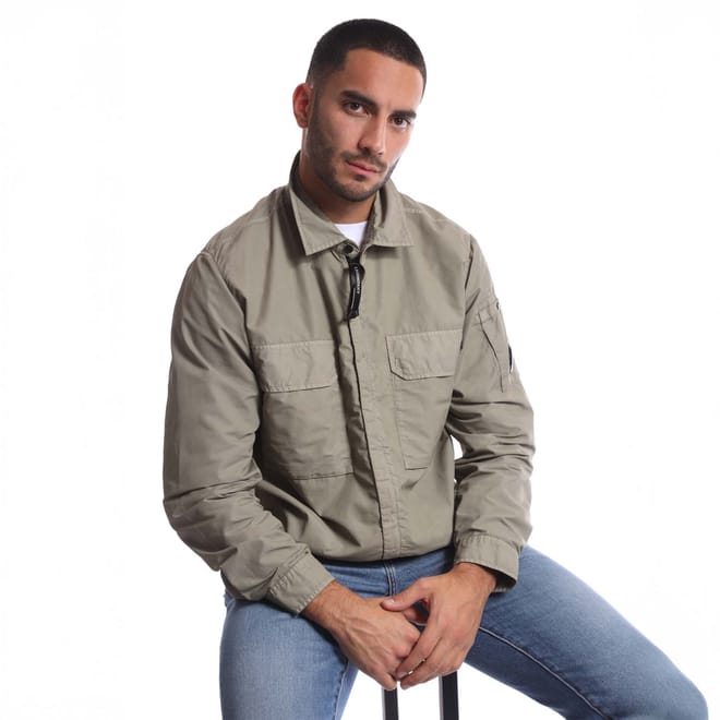 Mens C.P. Company Flatt Nylon Lens Zipped Overshirt in grey.