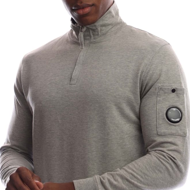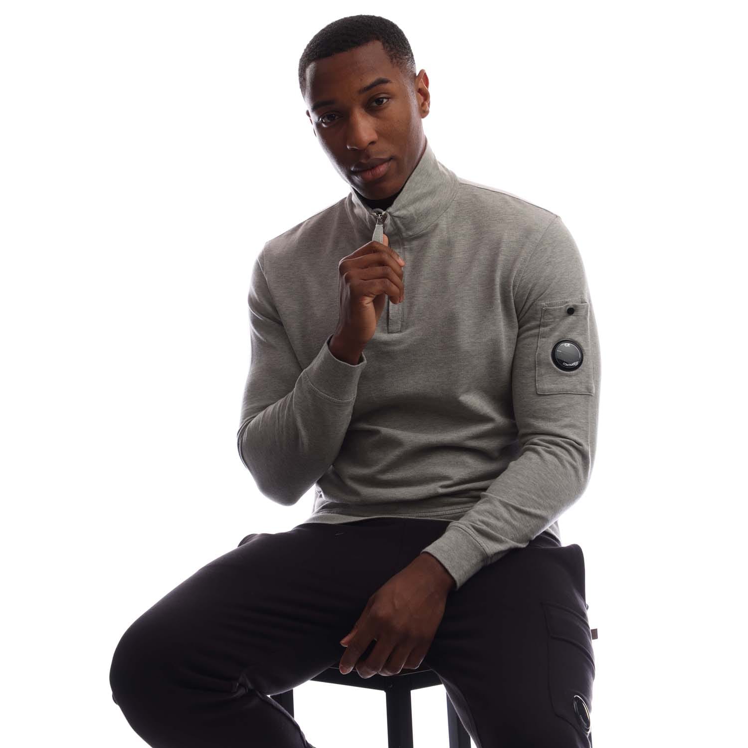 Mens C.P. Company Light Fleece Half Zip Sweatshirt in greystone melange.