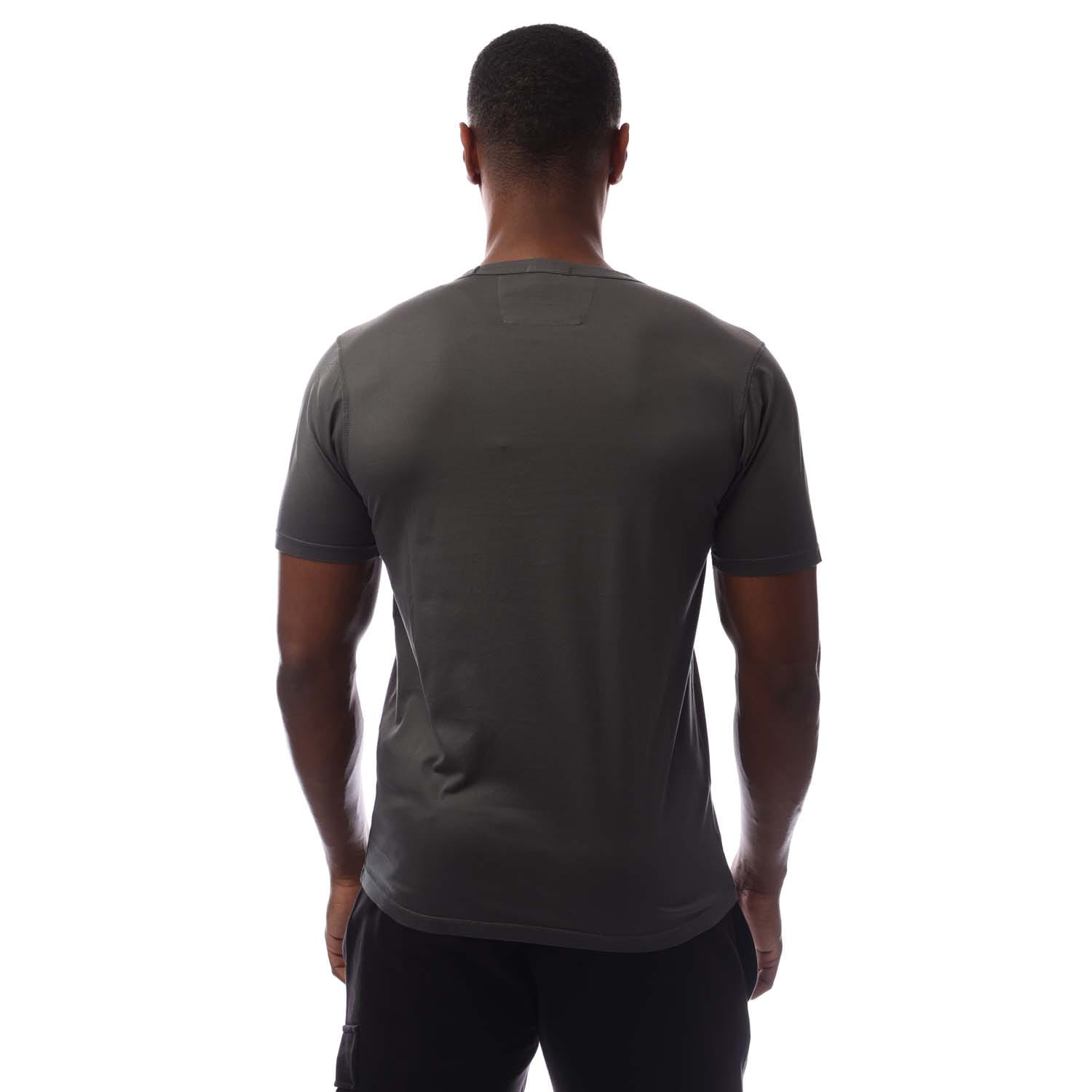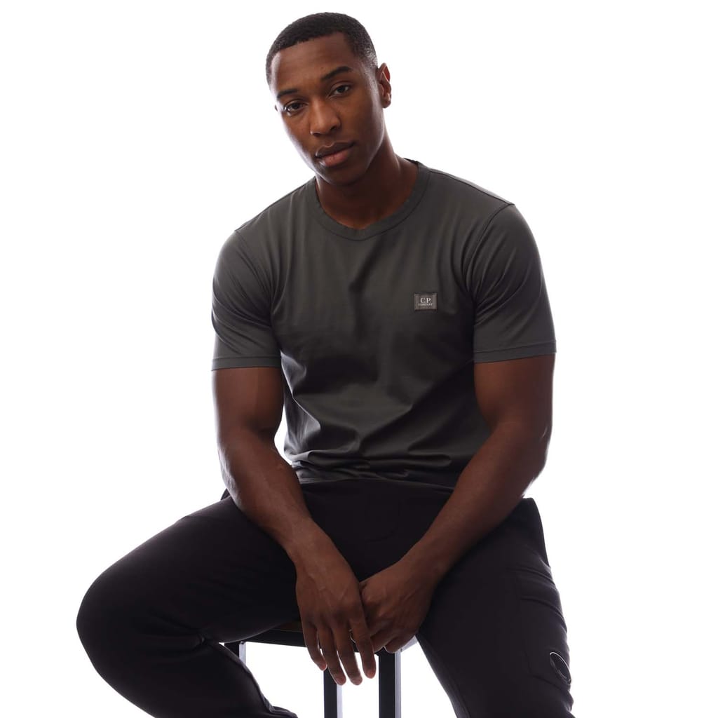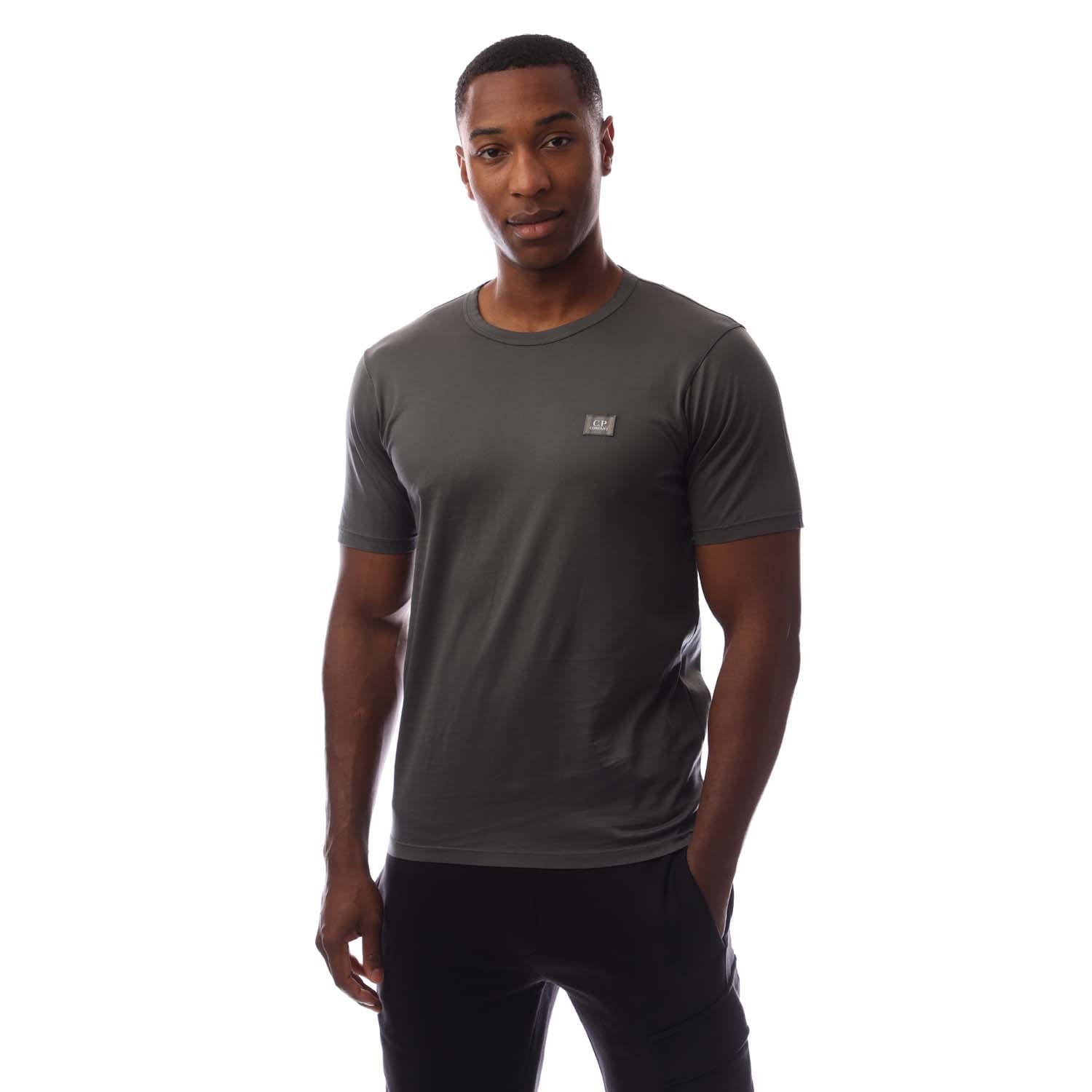 Mens C.P. Company 70/2 Mercerized Light Jersey Logo Patch T-Shirt in dark shadow.