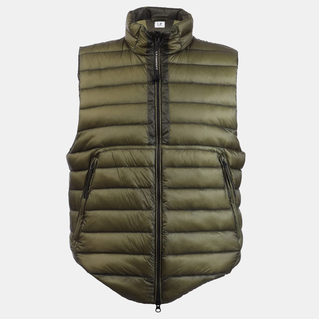 Mens C.P. Company D.D. Shell Goggle Down Gilet in green.