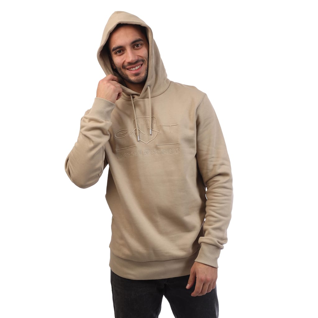 Mens Gant Tonal Archive Shield Hoodie in beige.