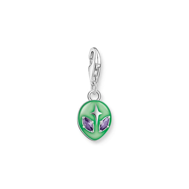 Charm pendant alien with green cold enamel and white zirconia silver -