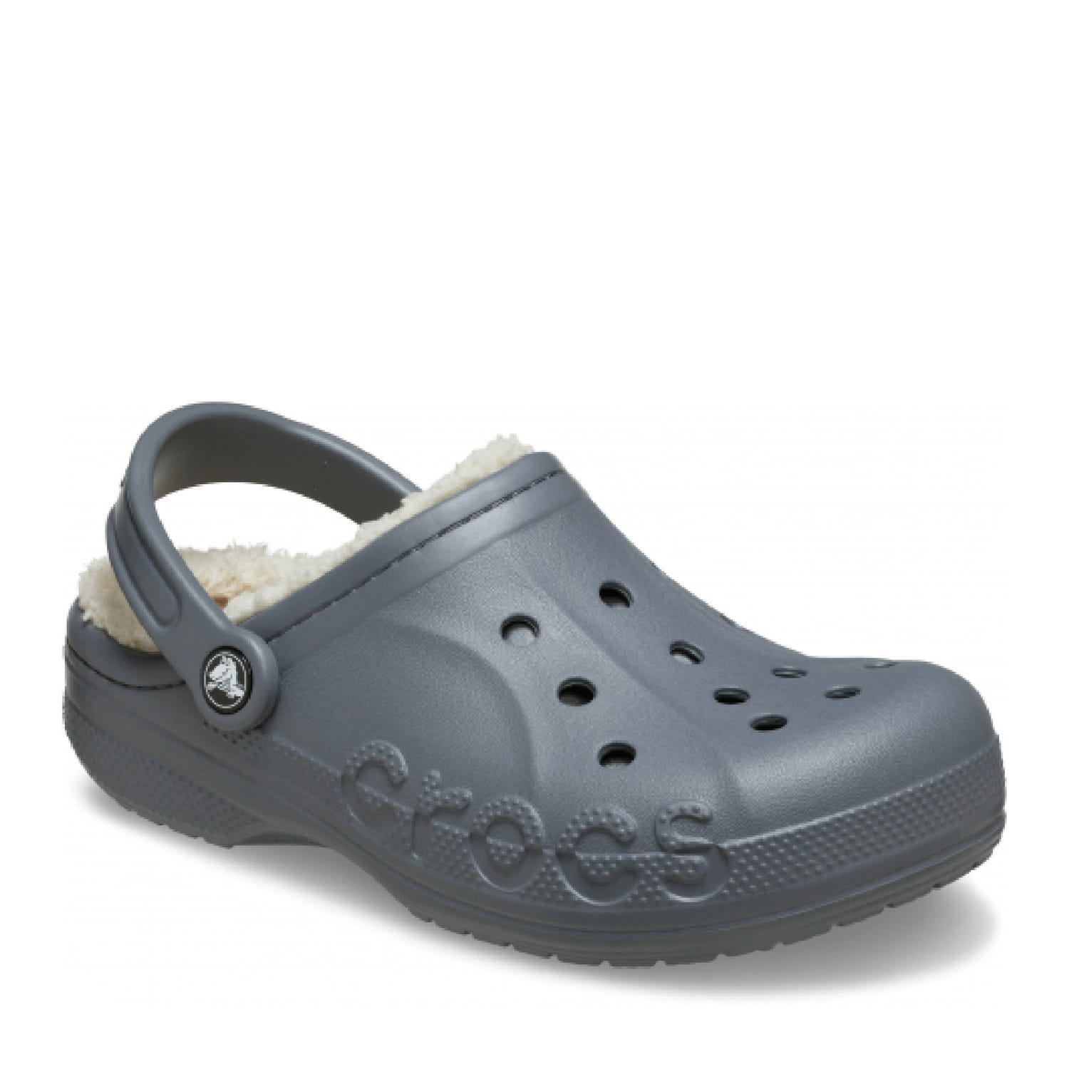Croslite™ foam construction with a synthetic fuzzy liner. Pivoting heel strap. Customizable with Jibbitz™ charms. Lightweight and comfortable. -