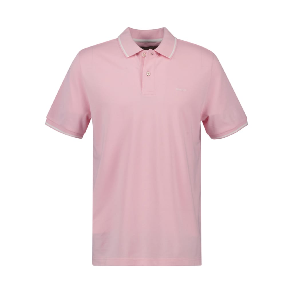 Crafted from 100% cotton in a soft piqué texture, this GANT polo shirt is cut for a regular fit. It is designed with short sleeves, a flat knit collar and a two button placket. This polo shirt features tipping on the cuffs and collar, plus the signature GANT logo embroidered at the chest. -