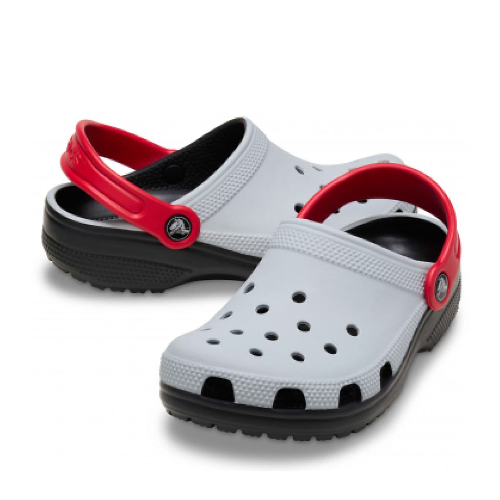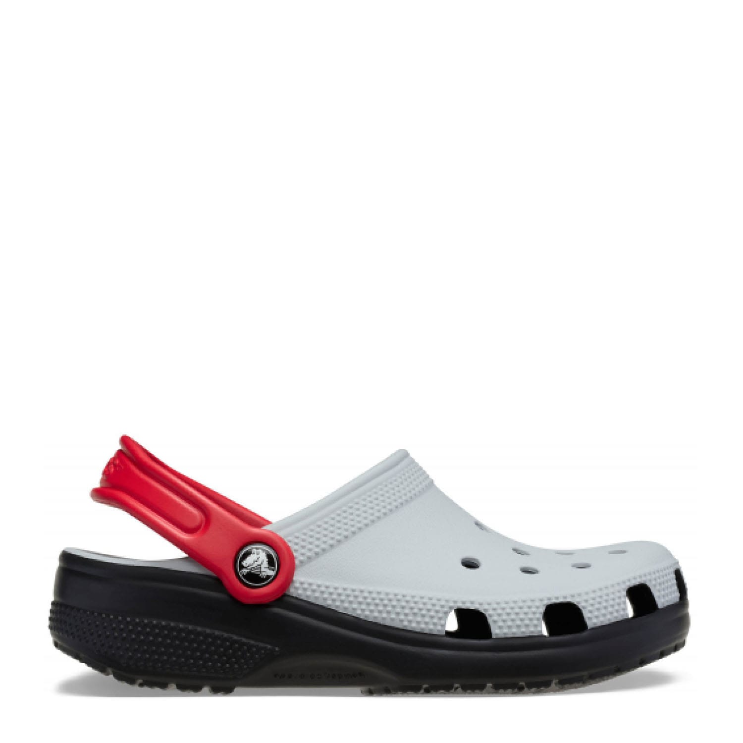Made from lightweight, supportive Croslite™ foam. Pivoting heel strap. Features a stylish color block design inspired by vintage sports jerseys. Customizable with Jibbitz™ charms. -
