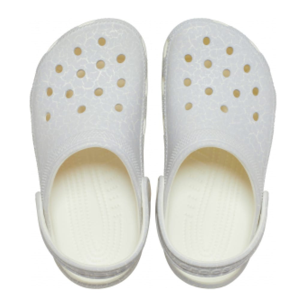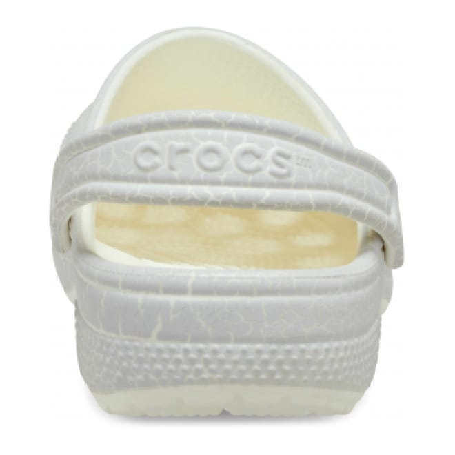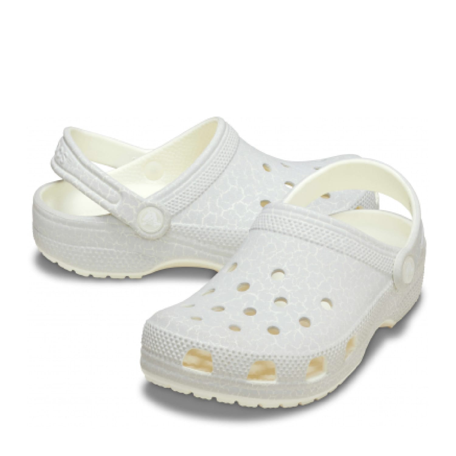Feature a unique white "crackle" pattern on the upper and the pivoting heel strap. Water-friendly. They are made from the signature lightweight and comfortable Croslite™ foam construction. -