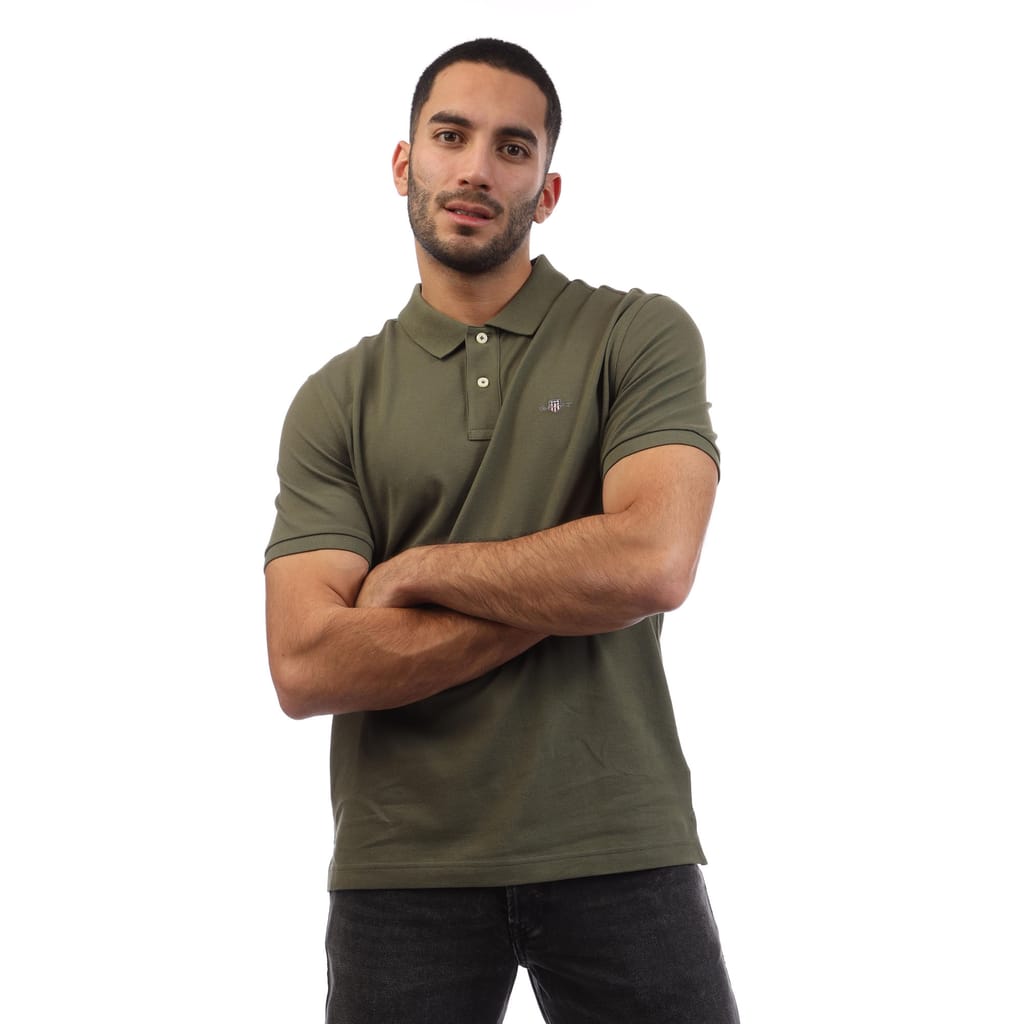 Mens Gant Regular Fit Shield Piqué Polo Shirt in juniper green