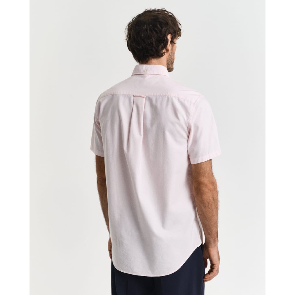 "A foundation for any modern wardrobe, this authentic cotton Oxford shirt is a GANT icon. Cut for a regular fit, this short-sleeved shirt has a button-down collar, chest pocket, curved hem and a box pleat with the signature GANT locker loop invention at the back. It is accented with an '80s archive-inspired GANT shield graphic embroidered at the chest. By choosing our cotton products, you’re supporting GANT's investment in Better Cotton’s mission. This product is sourced via a system of mass balance and therefore may not contain Better Cotton. Read more on bettercotton.org/massbalance." -