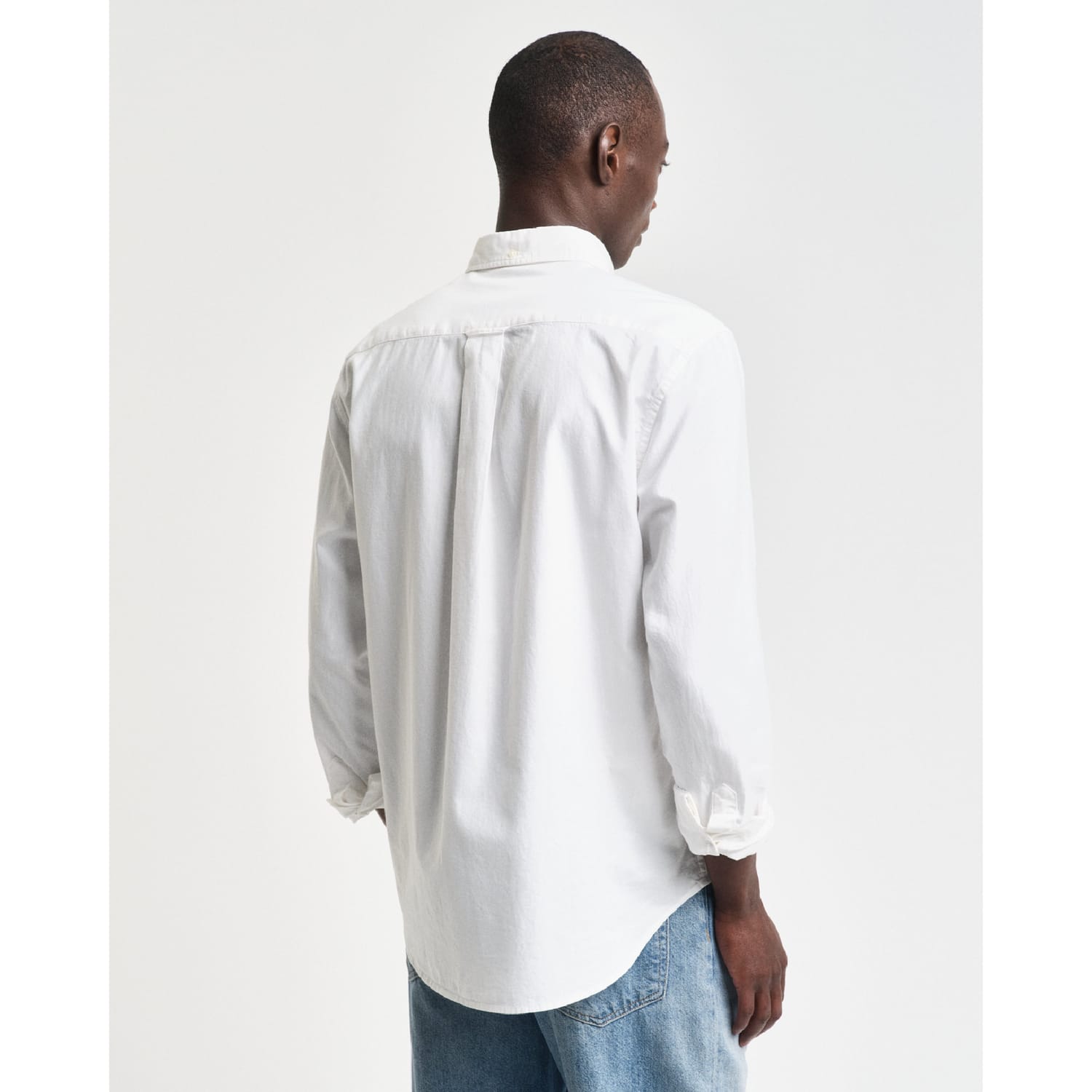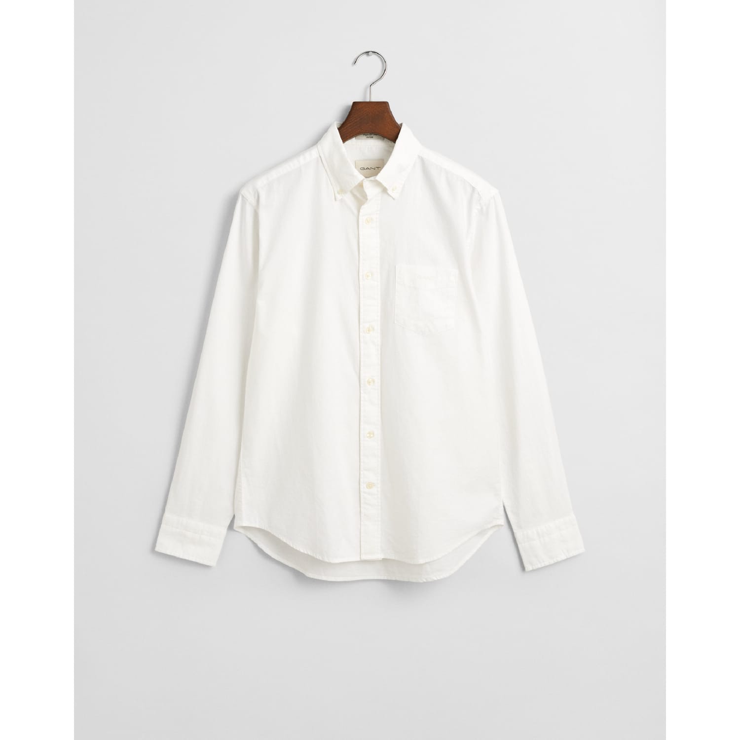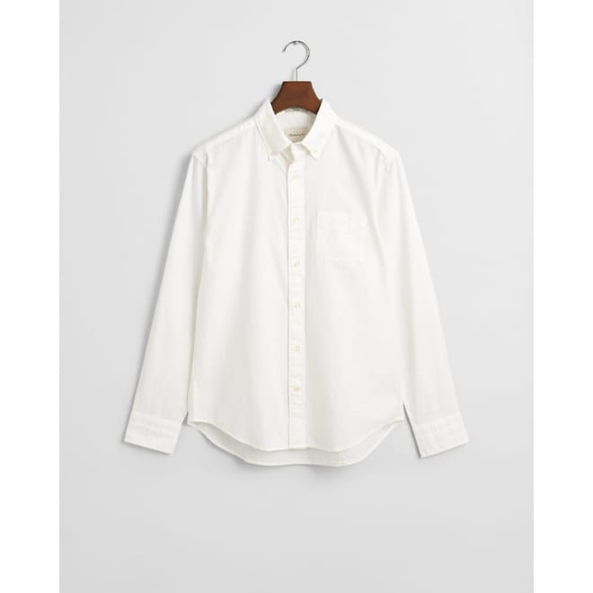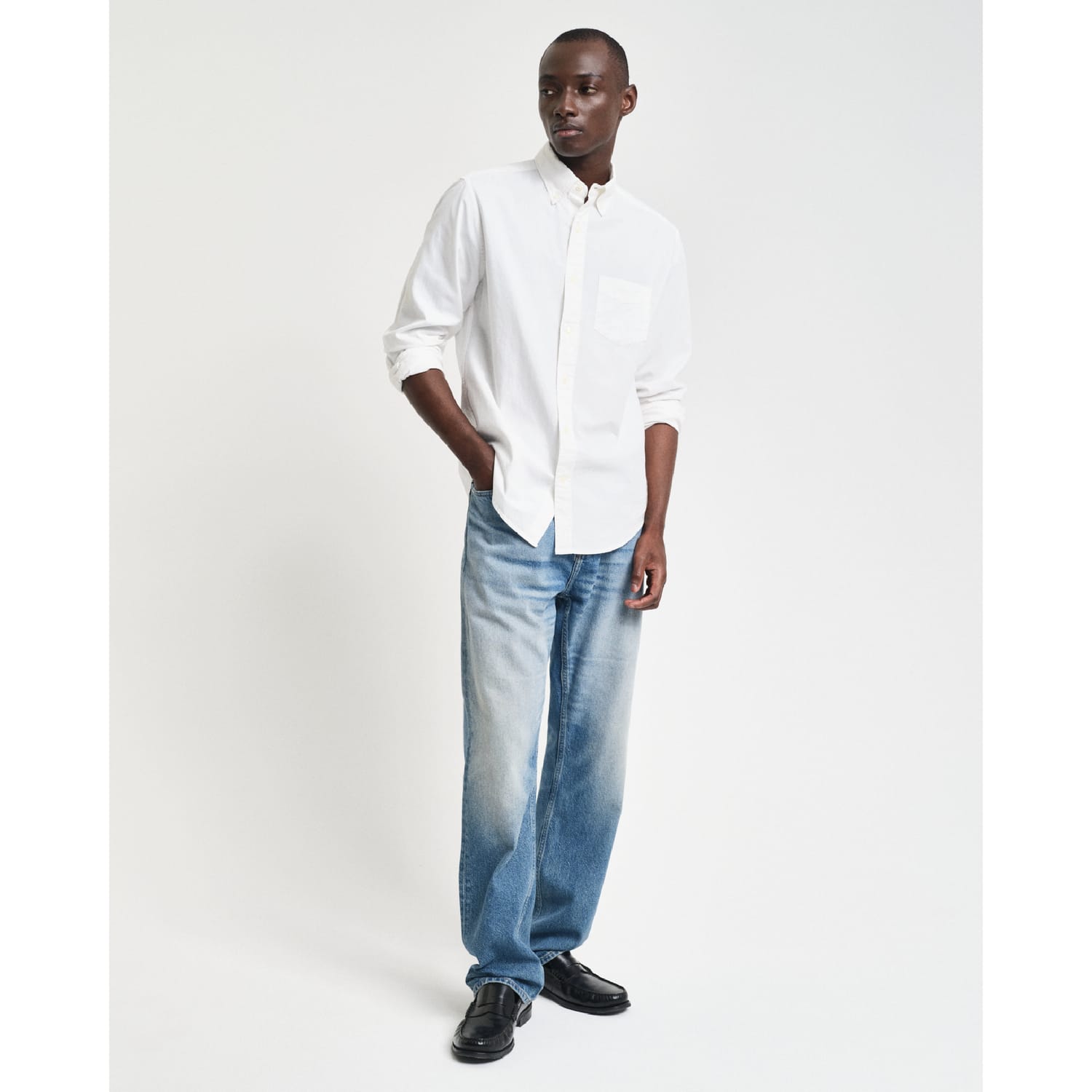 Classic button-down collar. Long sleeves with adjustable cuffs. Full button fastening. Single patch pocket on the chest. Signature box pleat with locker loop at the back. Curved hem. -
