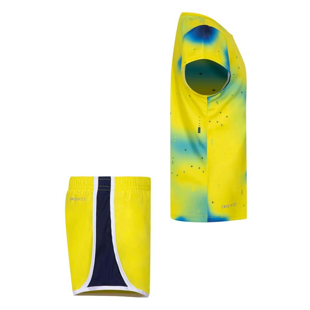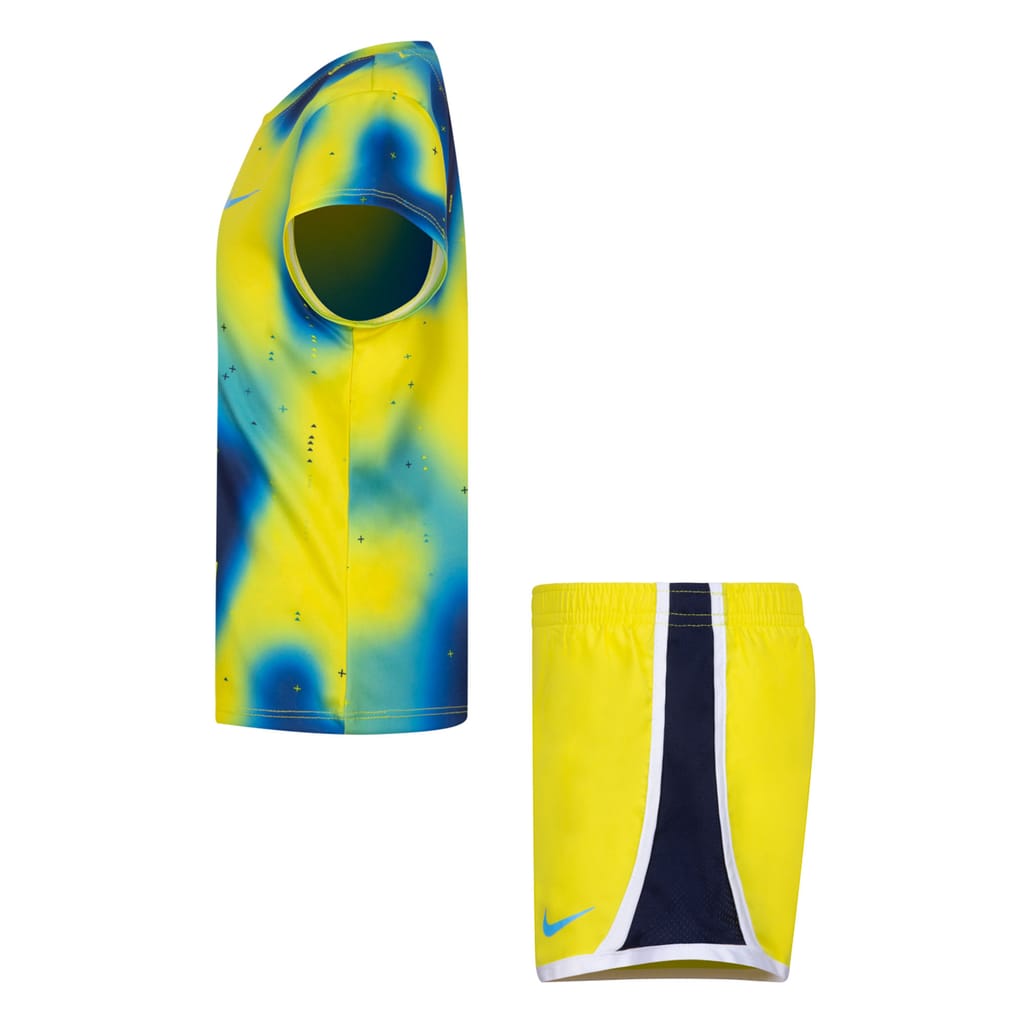 Crewneck. Short sleeved. Elasticated waistband. Vibrant, abstract print. Small Nike swoosh logo. Dri-FIT technology to wick away sweat, keeping you dry and comfortable. -