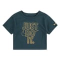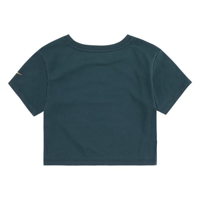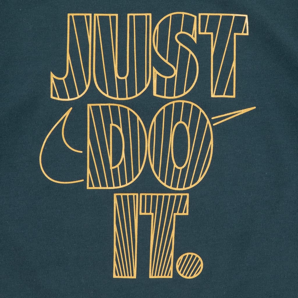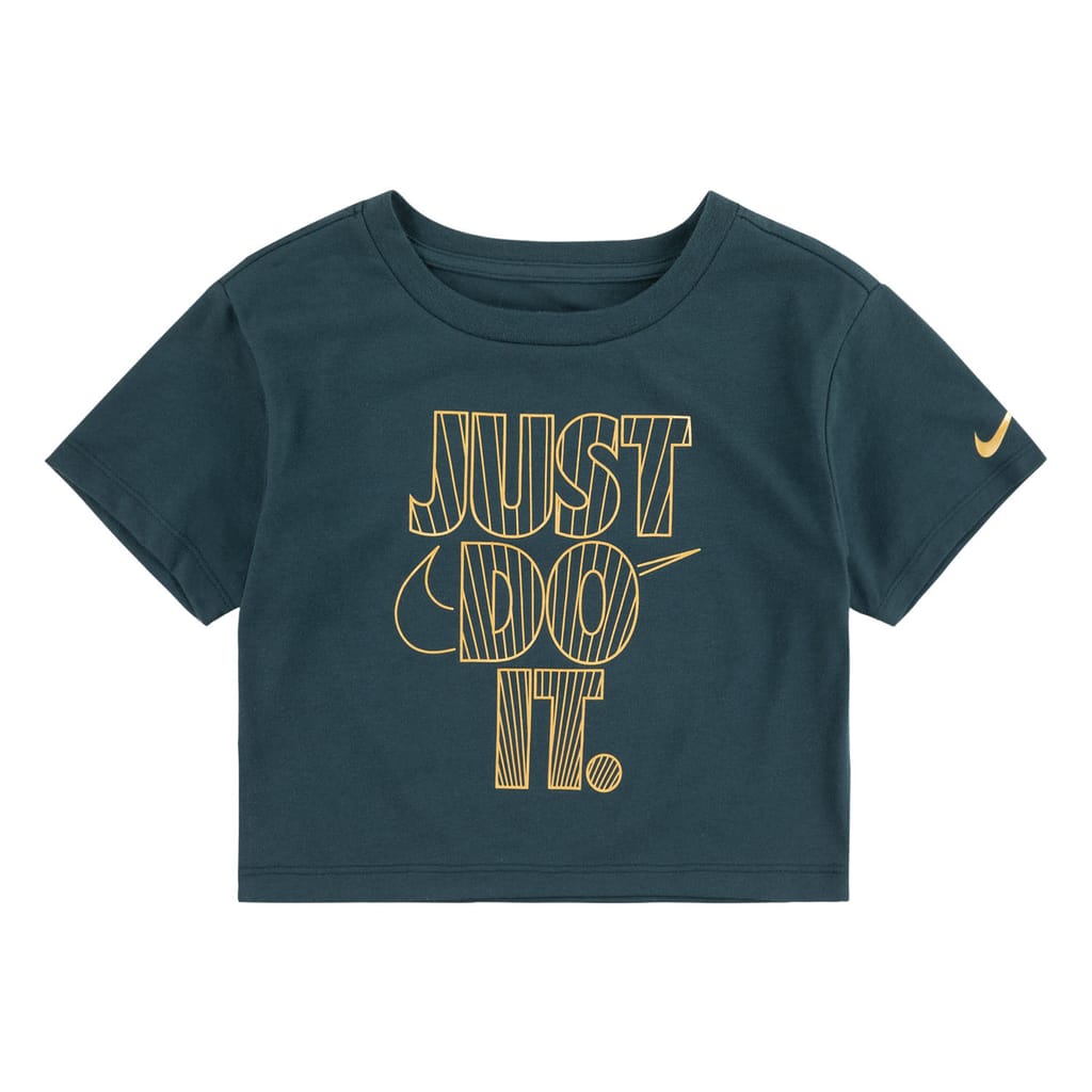 Ribbed crewneck. Short sleeves. Bold, classic Nike Swoosh logo. -