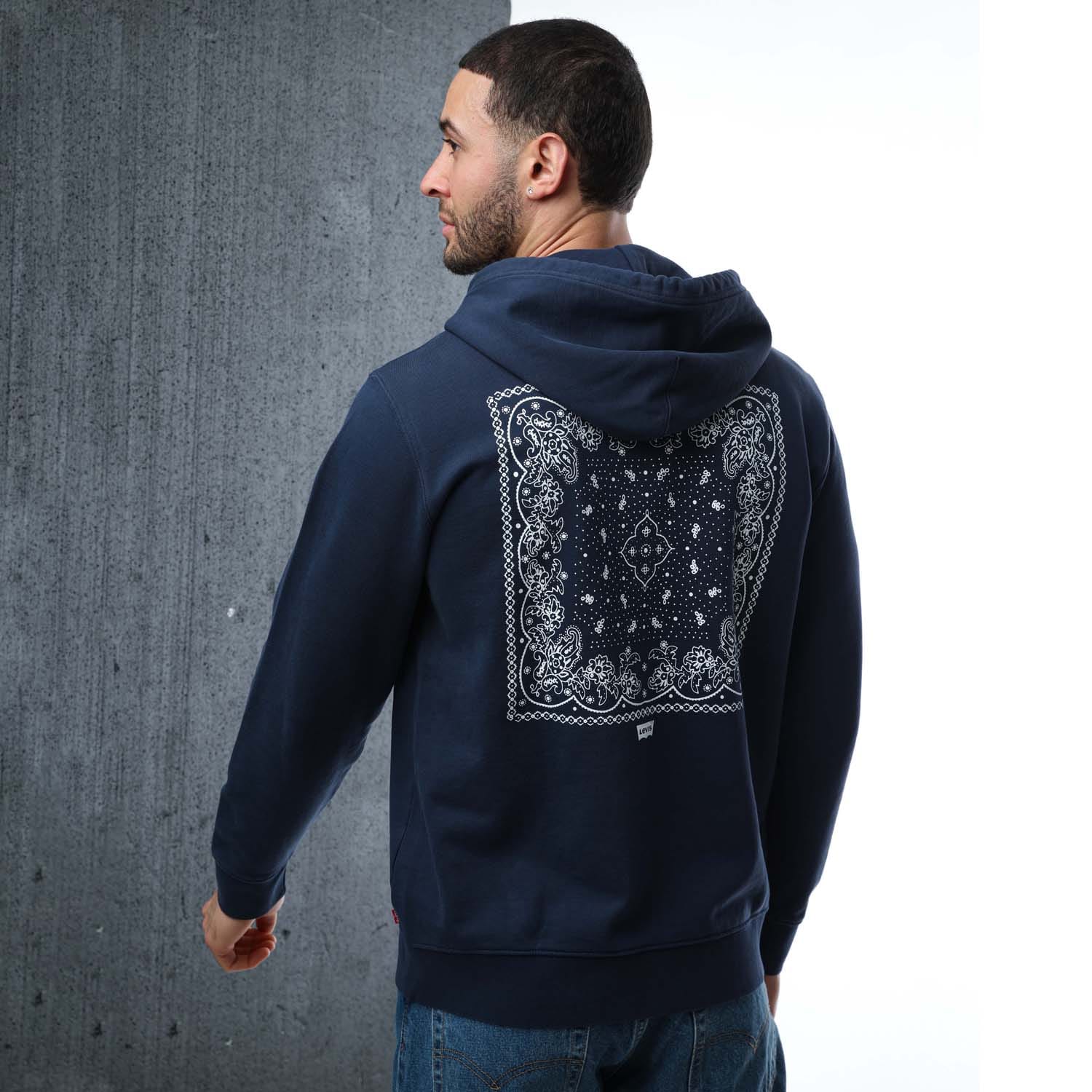 Mens Levis Standard Graphic Bandana Hoodie in blue.