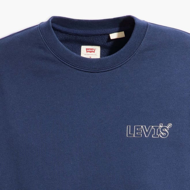 Mens Levis Relaxed Graphic Crew Neck Sweatshirt in navy.