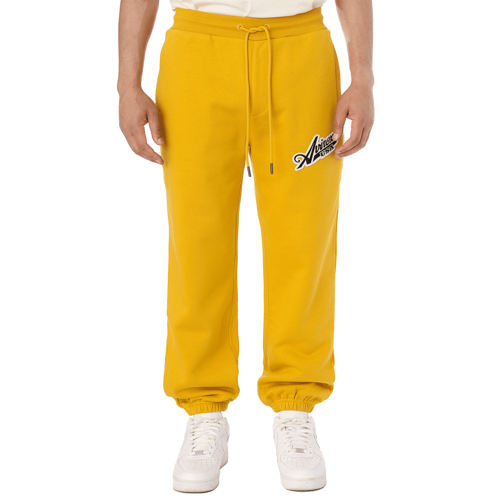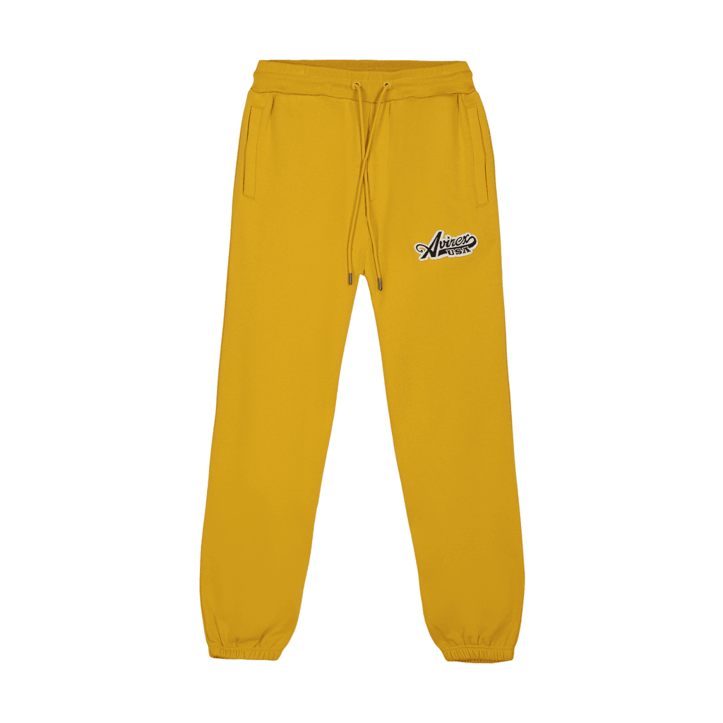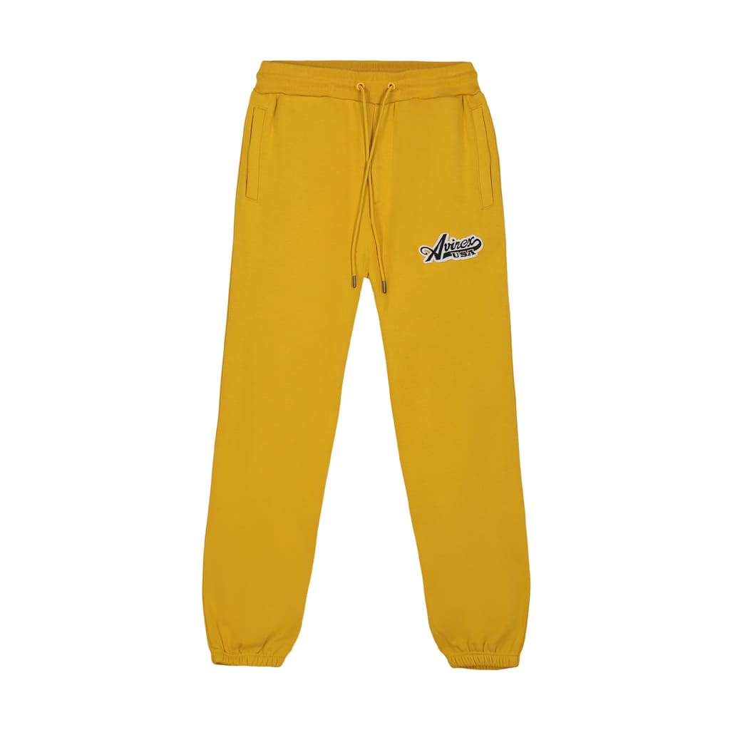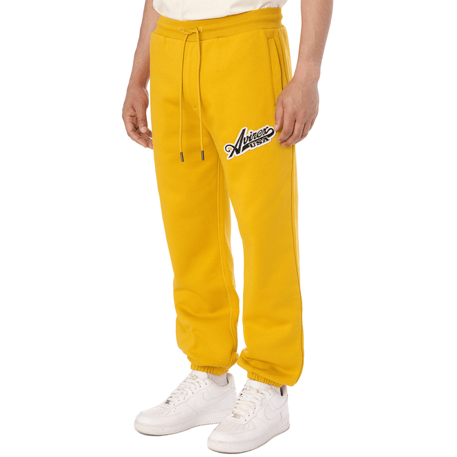 Mens Avirex Script Joggers in yellow.