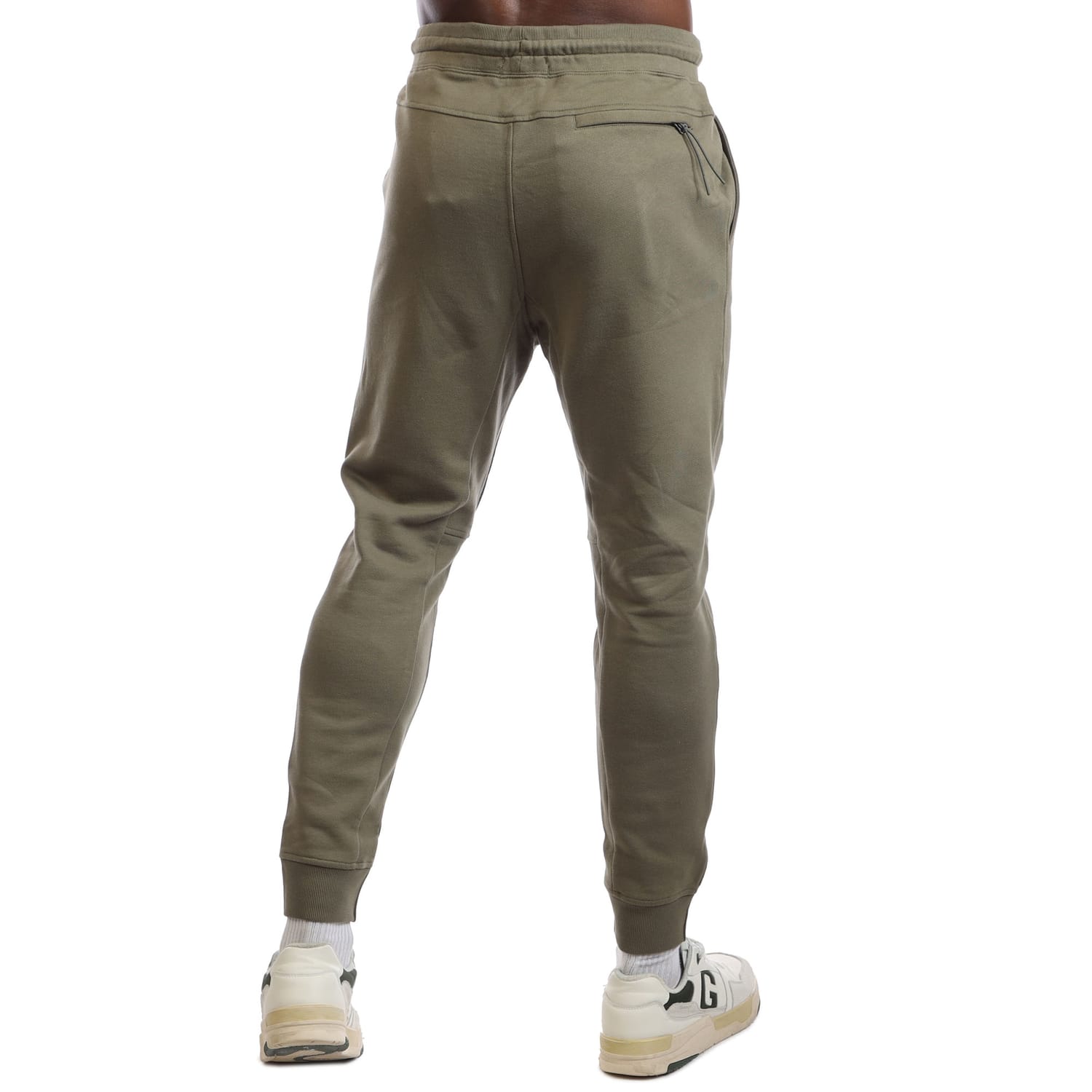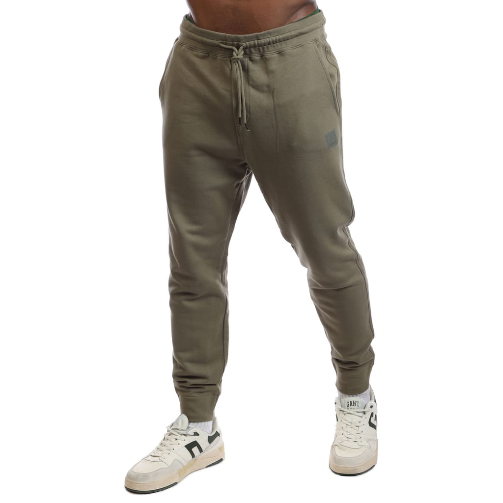 Mens C.P. Company Diagonal Raise Fleece Track Pants in stone grey.