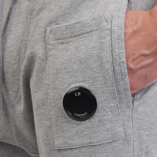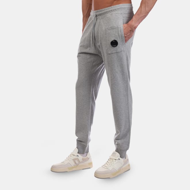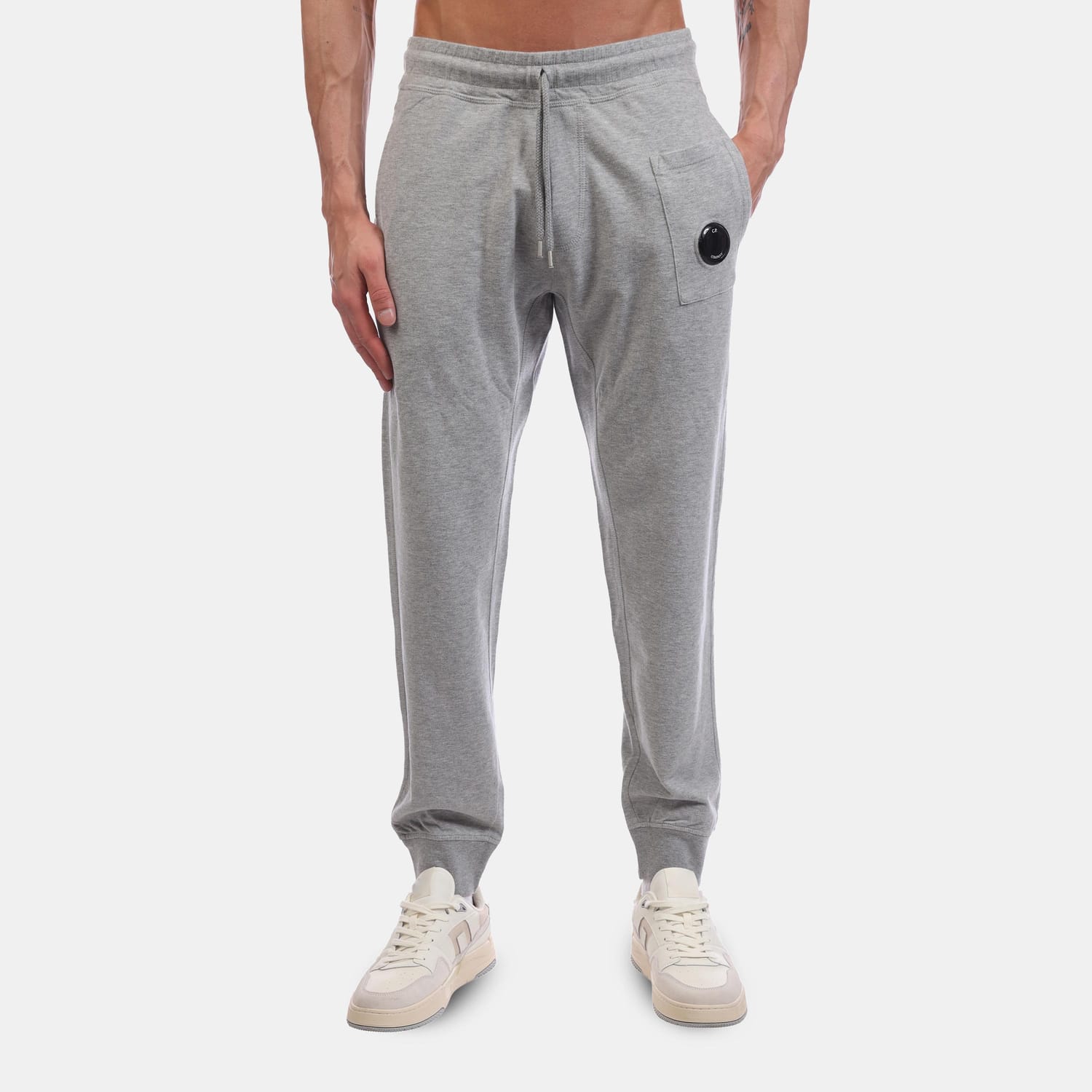 Mens C.P. Company Light Fleece Lens Sweatpants in grey.