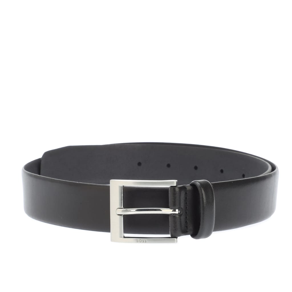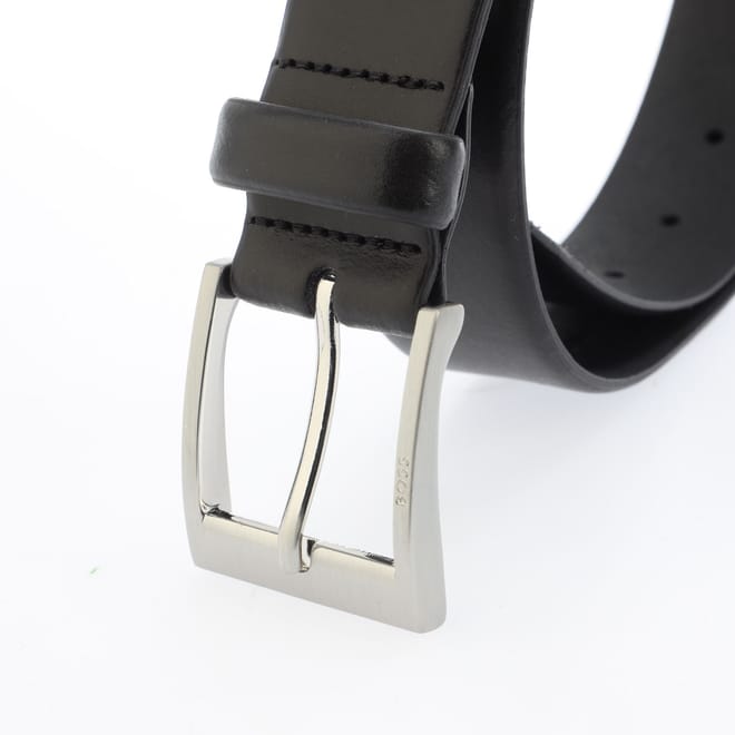 Mens Hugo Boss Almos Pin-Buckle Belt in Smooth Leather with Engraved Logo in black