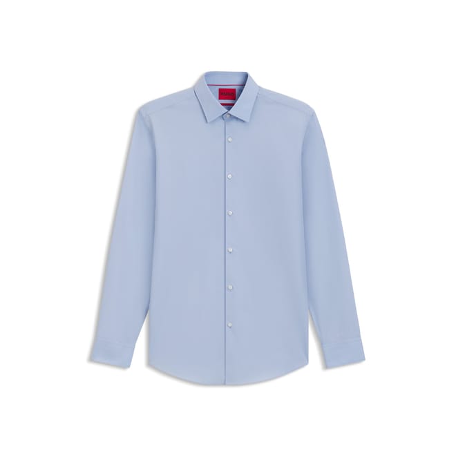Mens HUGO Kenno Slim-Fit Business Shirt in Cotton Poplin in light / pastel blue.