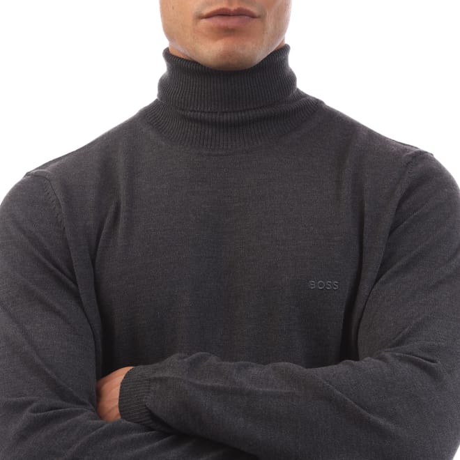Mens BOSS Baldebert-E Regular Fit Rollneck Sweater in Extra Fine Merino Wool in grey