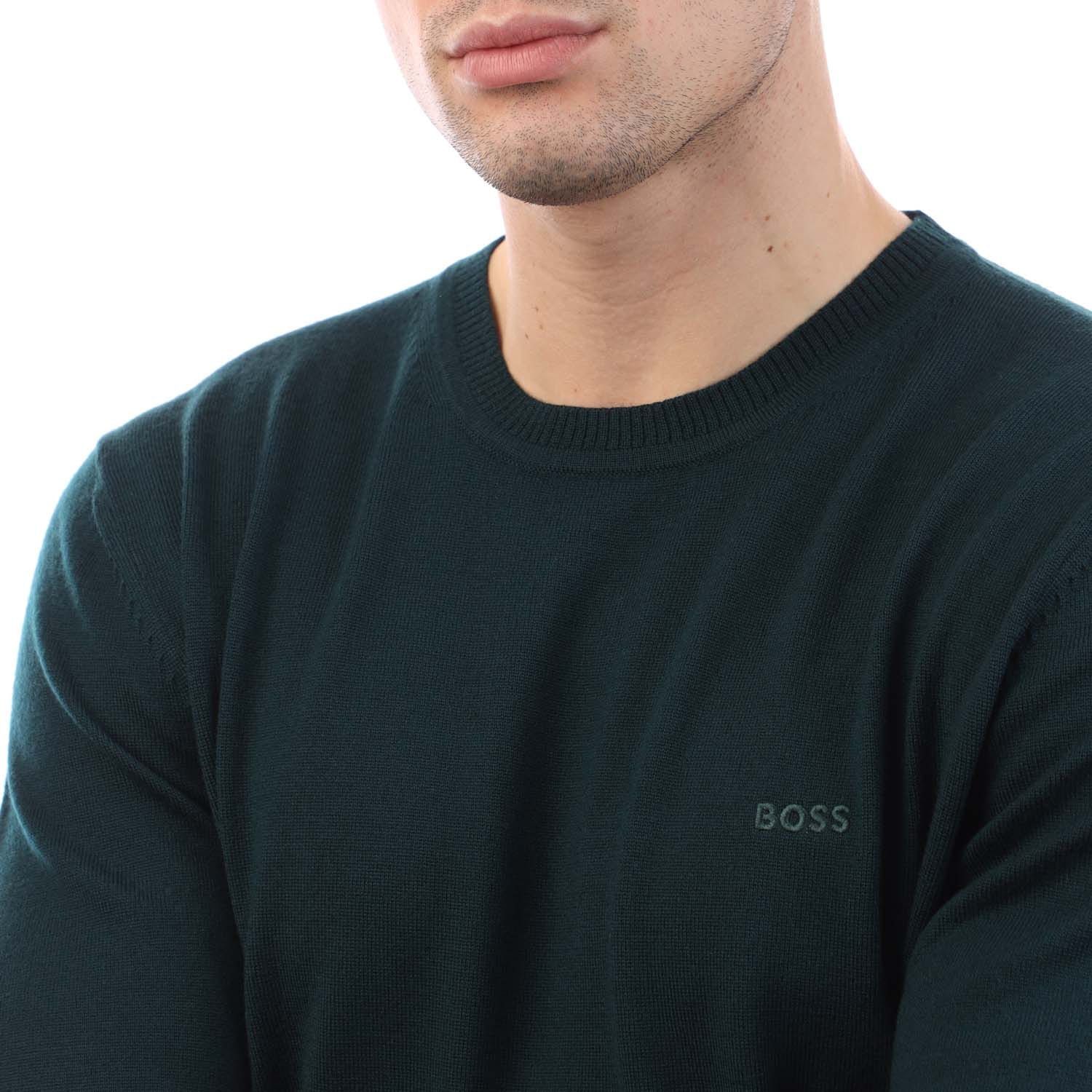 Mens BOSS Bagritte-E Regular Fit Sweater in Extra-Fine Merino in green