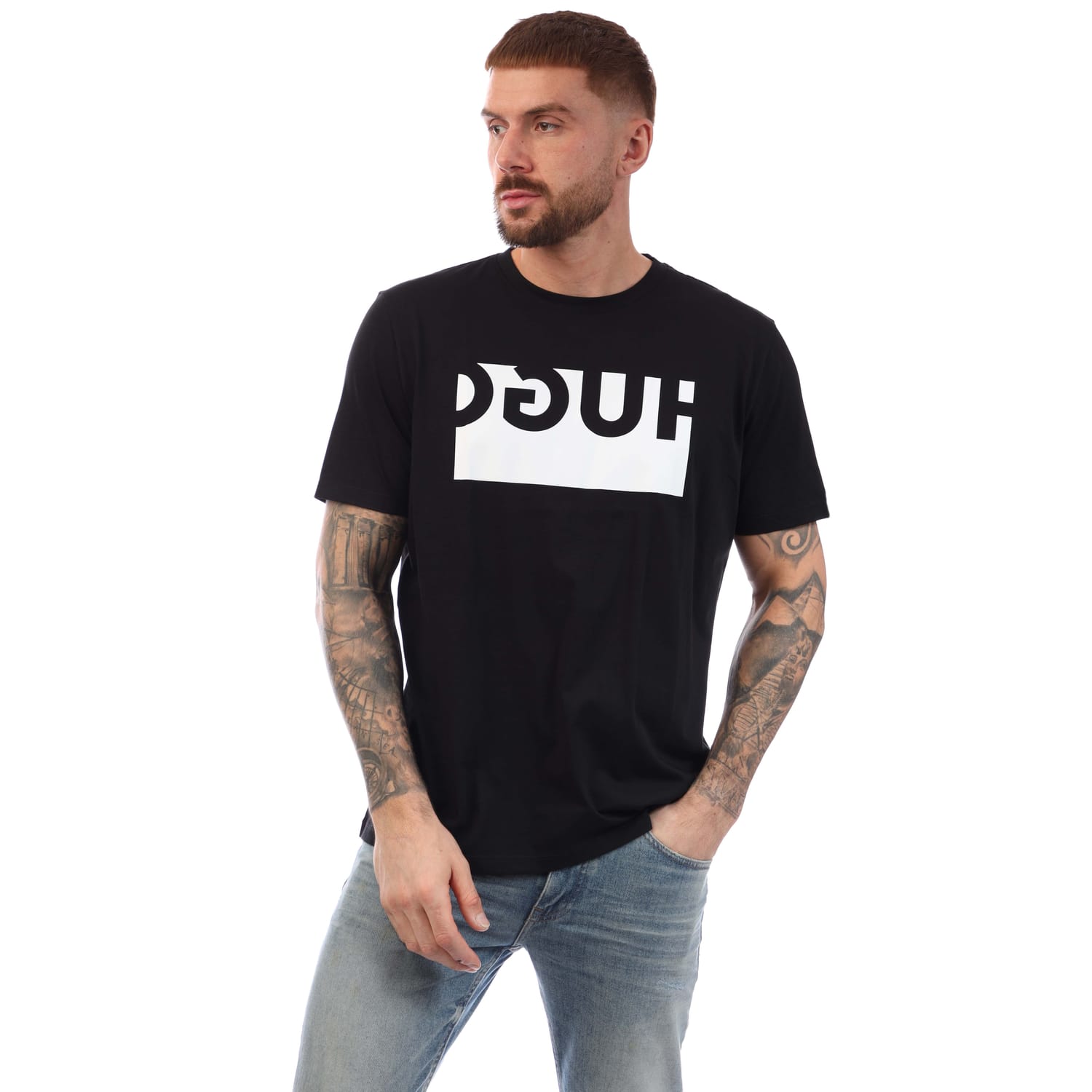 Mens HUGO Doguh Regular-fit T-shirt in cotton with reverse-logo print in black