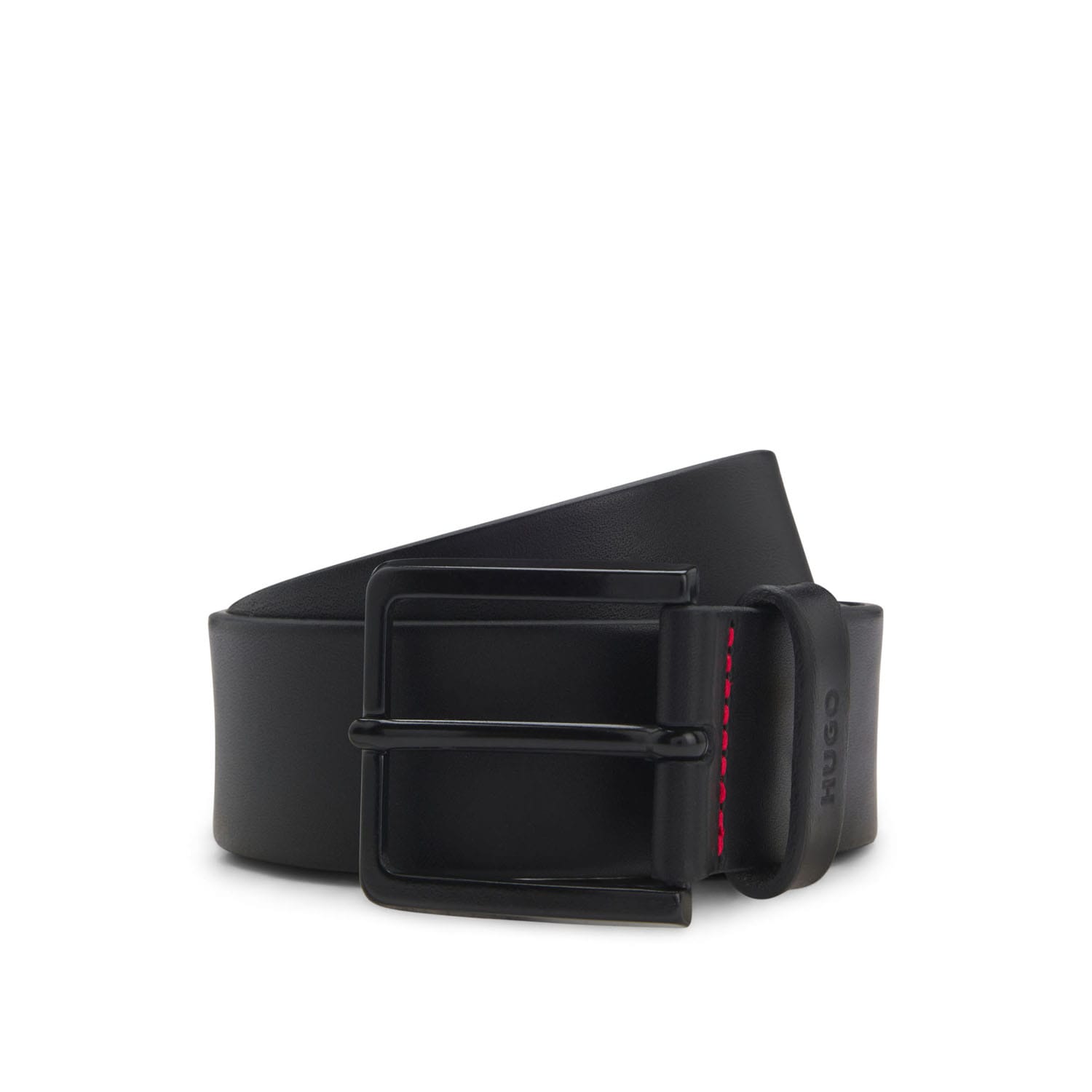 Mens HUGO Gionio Italian Leather Belt with Logo Stamped Keeper in black