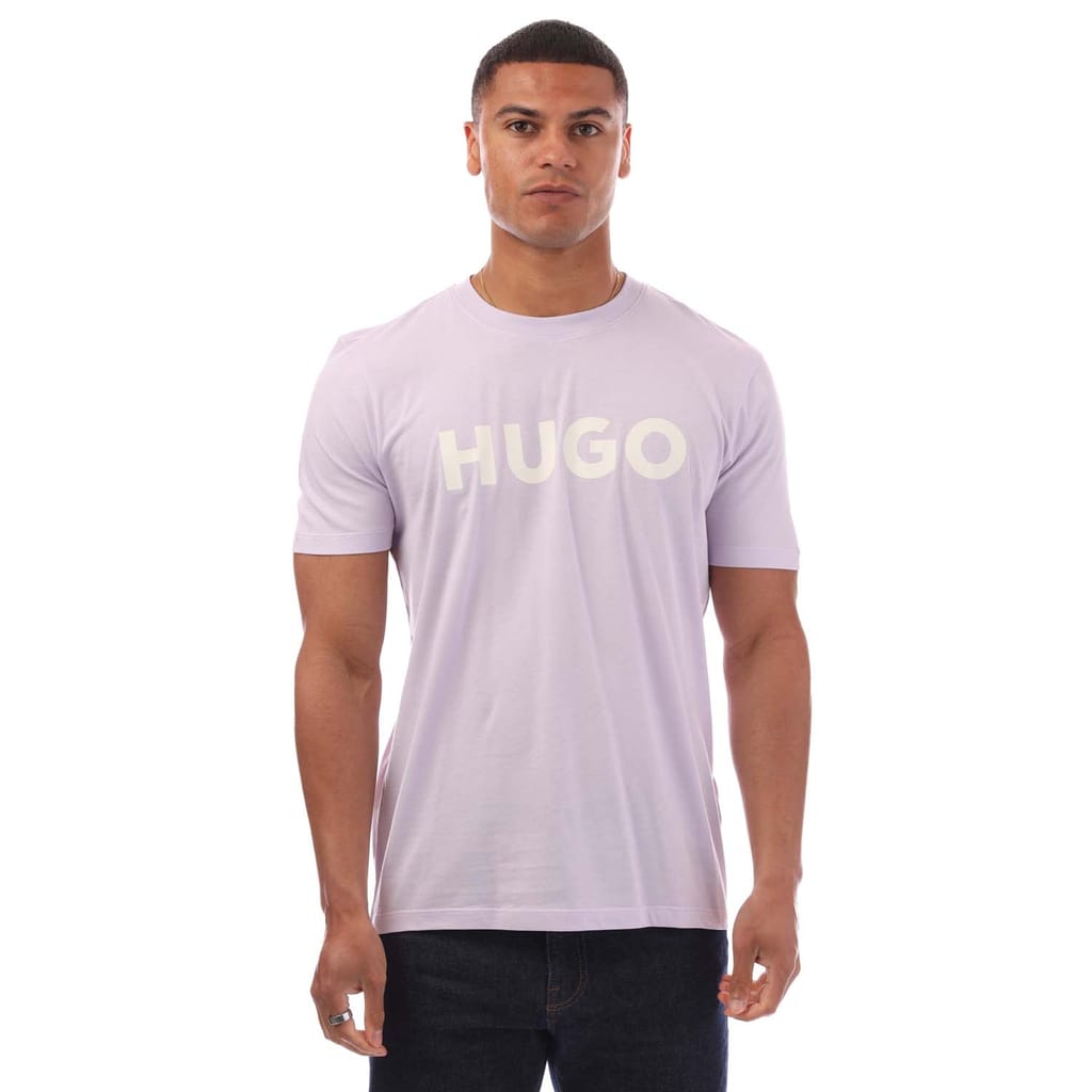 Mens HUGO Dulivio Regular Fit T-Shirt in Cotton Jersey with logo print in open purple.