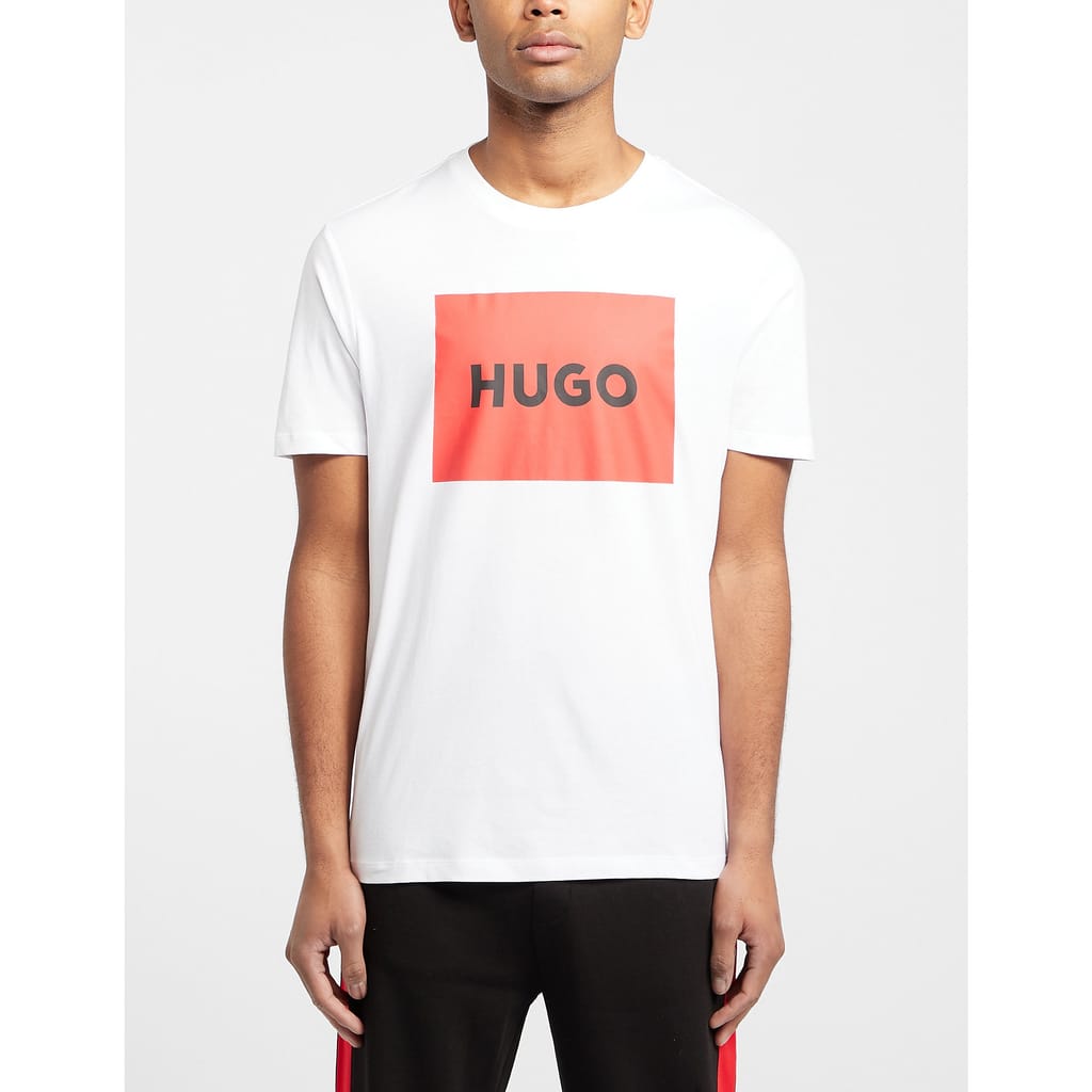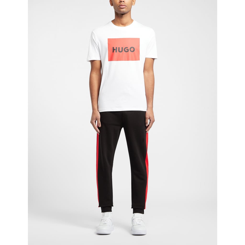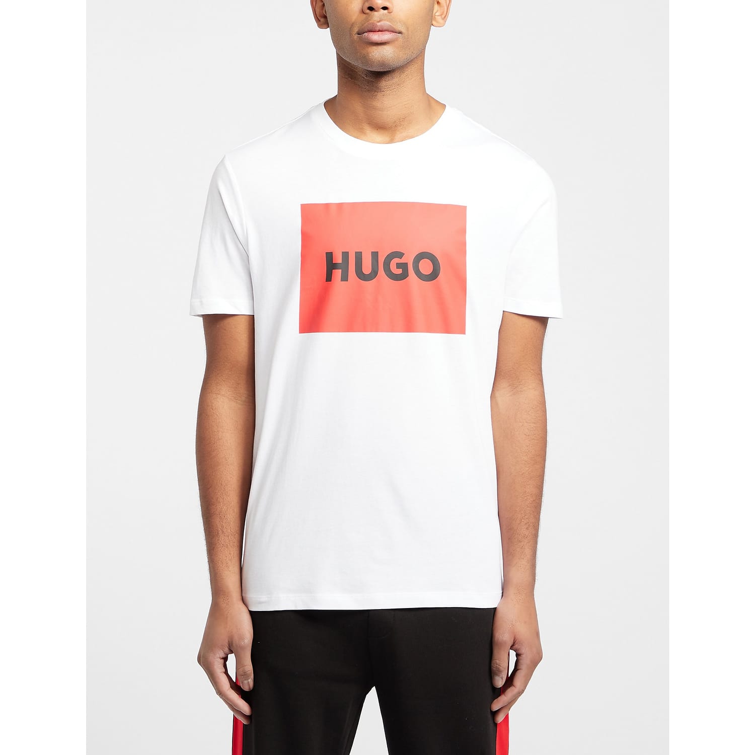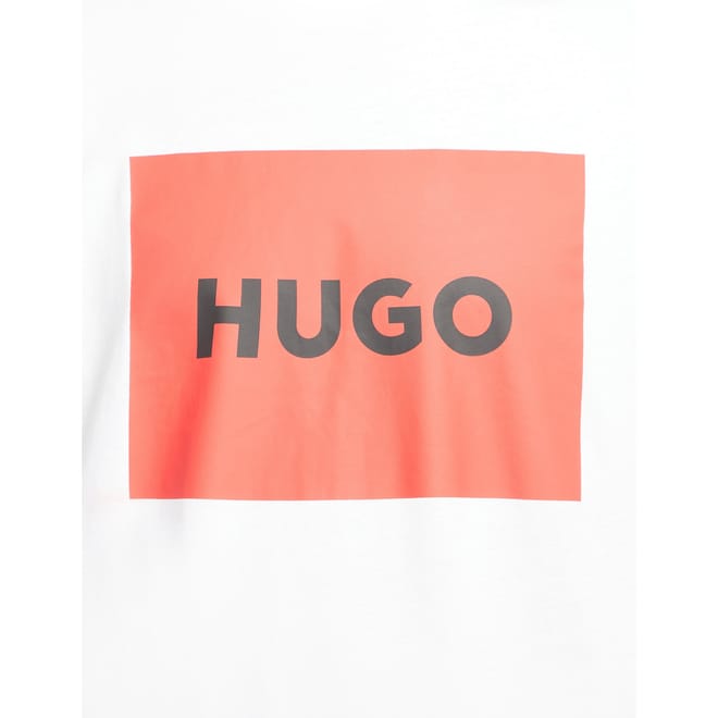 Mens HUGO Dulive Crew Neck T-Shirt in Cotton Jersey with Box Logo in white.