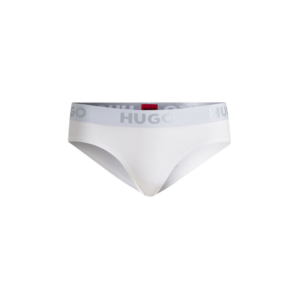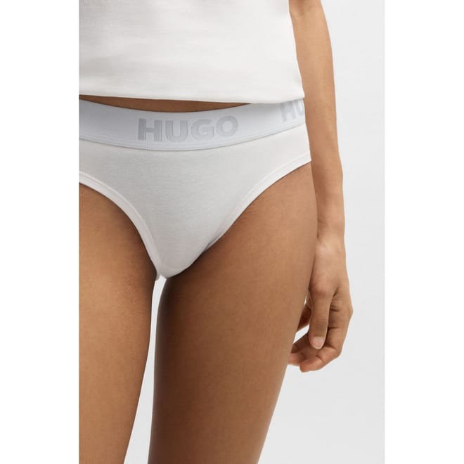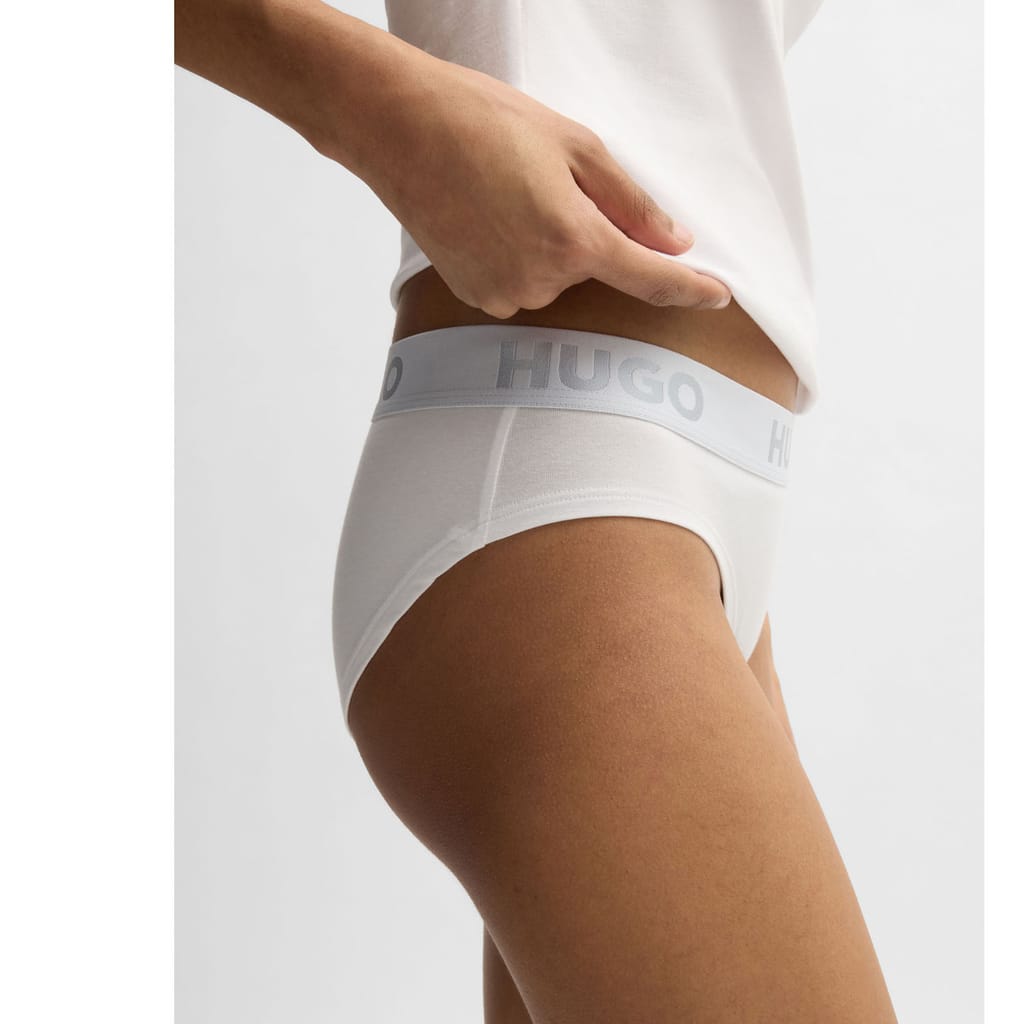 Womens HUGO Logo-waistband briefs in stretch cotton in white.