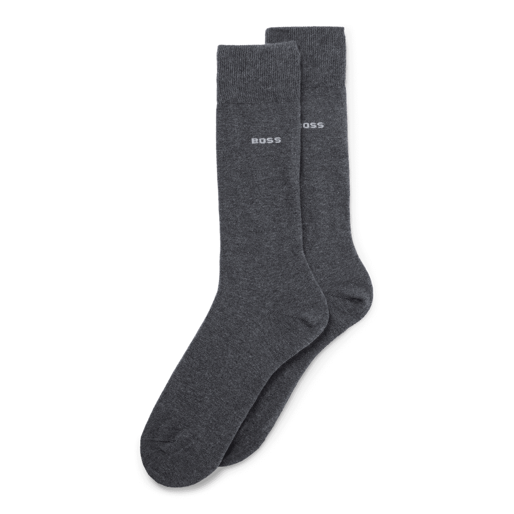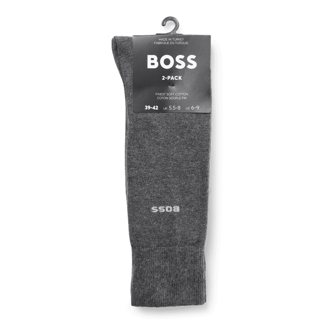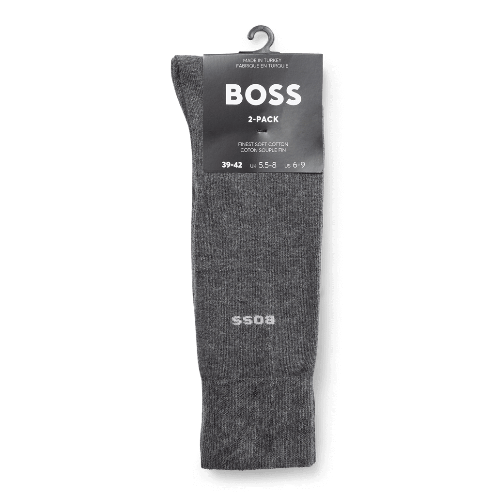 Mens BOSS Two Pack of Regular Length Socks in Stretch Cotton in medium grey