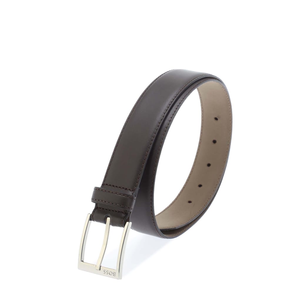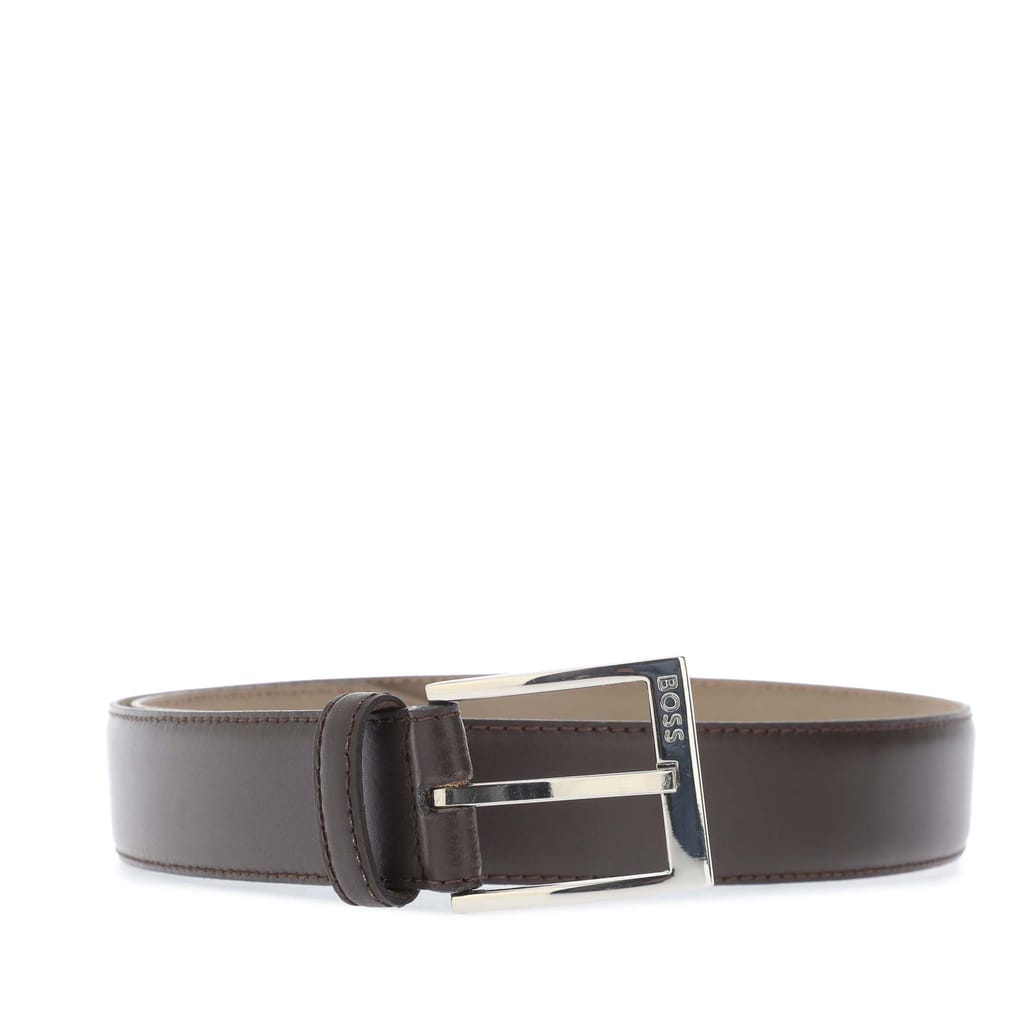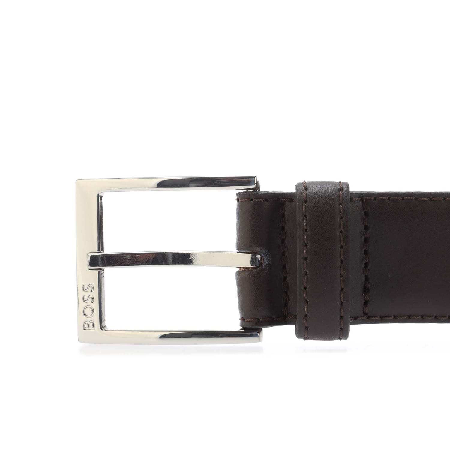 Mens BOSS Ellotyo Logo-Buckle Belt in Italian Leather in dark brown