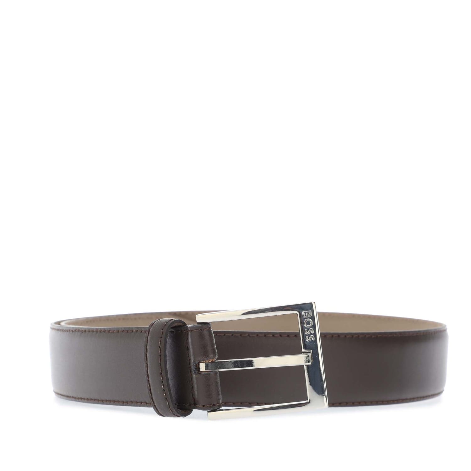 A contemporary belt by BOSS. Crafted in smooth leather from Italy, this sleek belt secures with a polished pin buckle engraved with a BOSS logo. Choose this accessory to pull an everyday look together. For the best fit, we advise ordering a belt one size larger than your waist size.