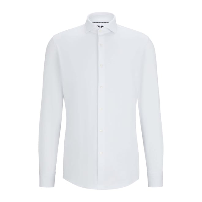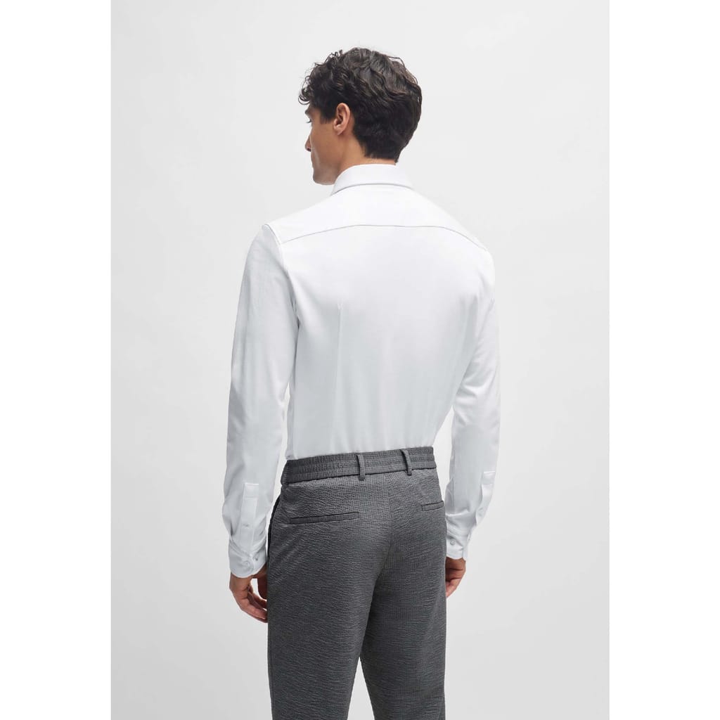 Mens BOSS P-Hank Slim Fit Shirt in Structured Performance Stretch Jersey in white