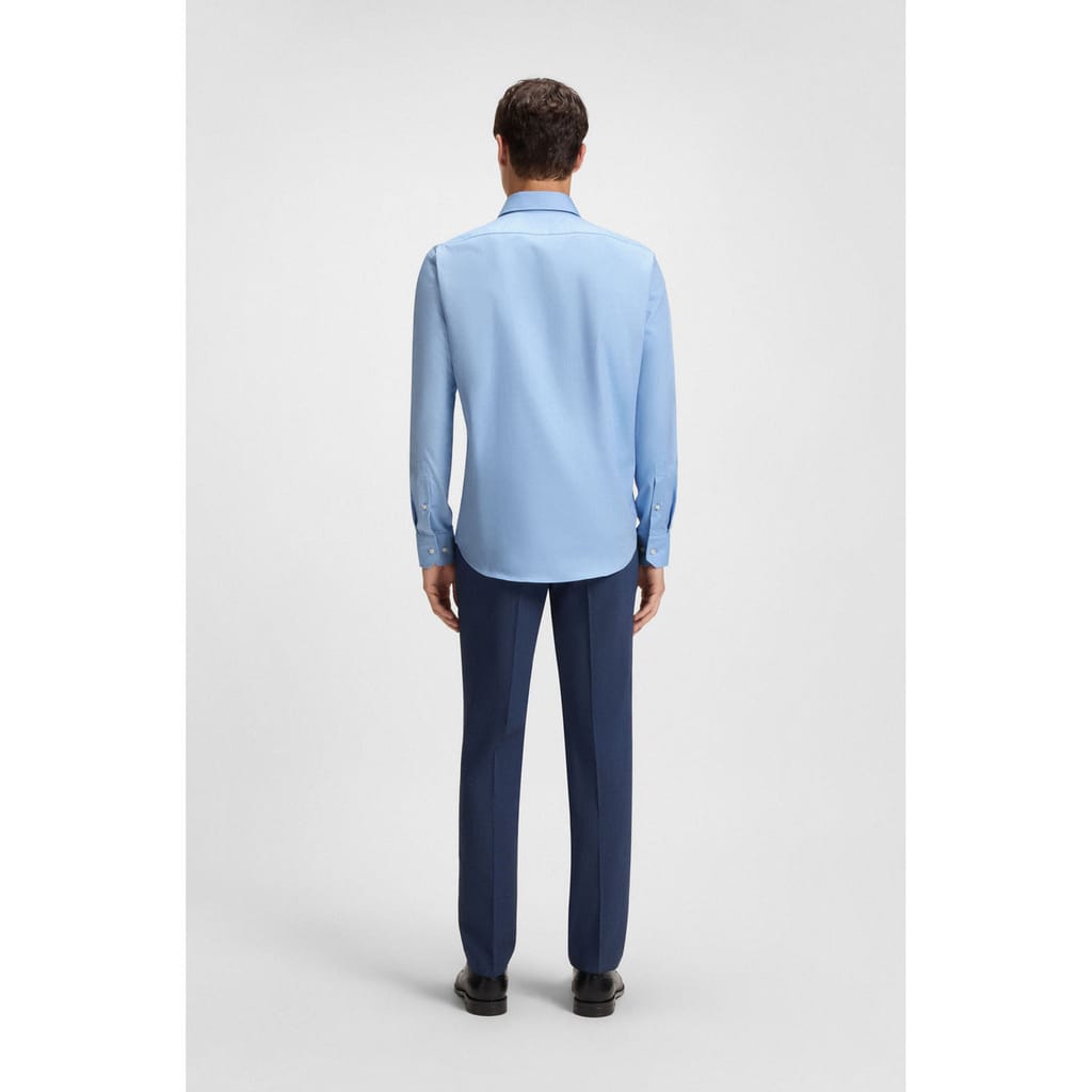 Mens BOSS H-Joe Easy Iron Regular Fit Shirt in Stretch Cotton in light / pastel blue.