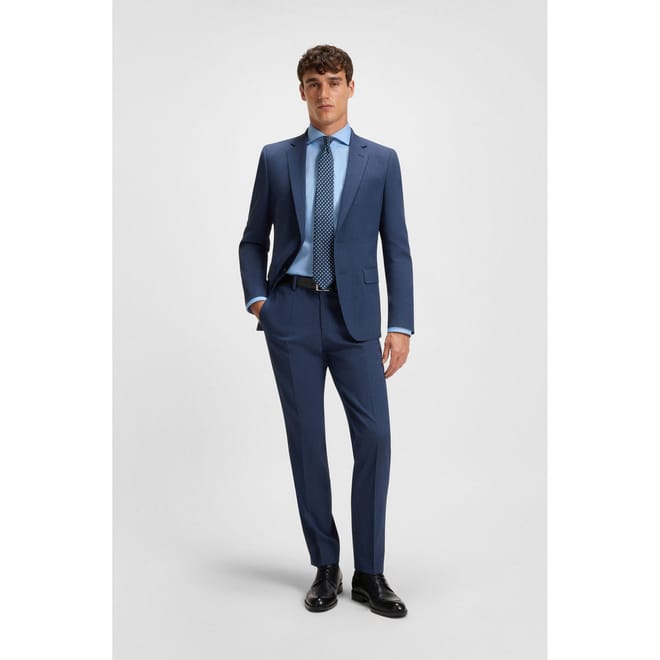 An adaptable shirt by BOSS Menswear. Crafted in cotton blended with stretch for comfort in movement, this business shirt is tailored to a straight fit and patterned with a diagonal-stripe structure. An easy-iron finish gives this modern piece a super-soft feel.