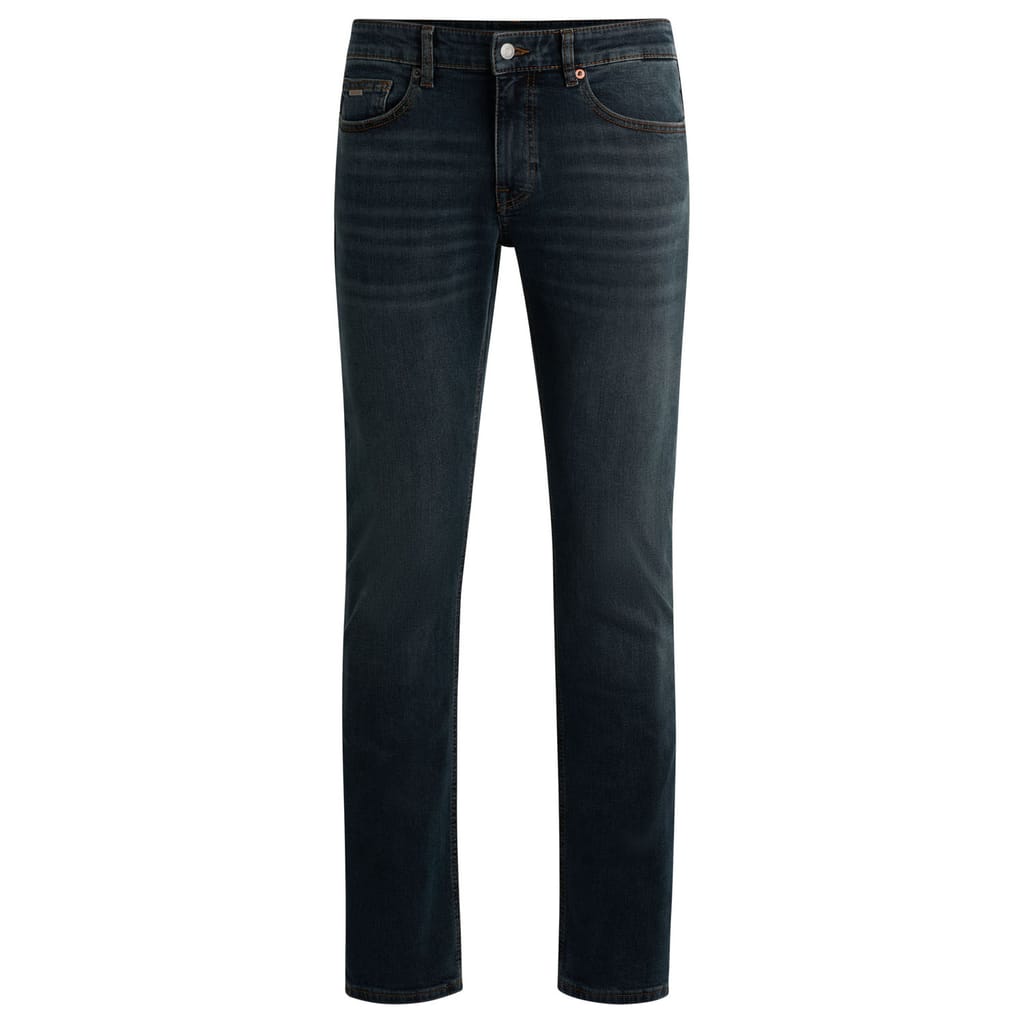 Regular-rise jeans cut to a slim fit by BOSS Menswear. Featuring an overdyed blue tone, this pair is crafted in stretch denim for comfort.