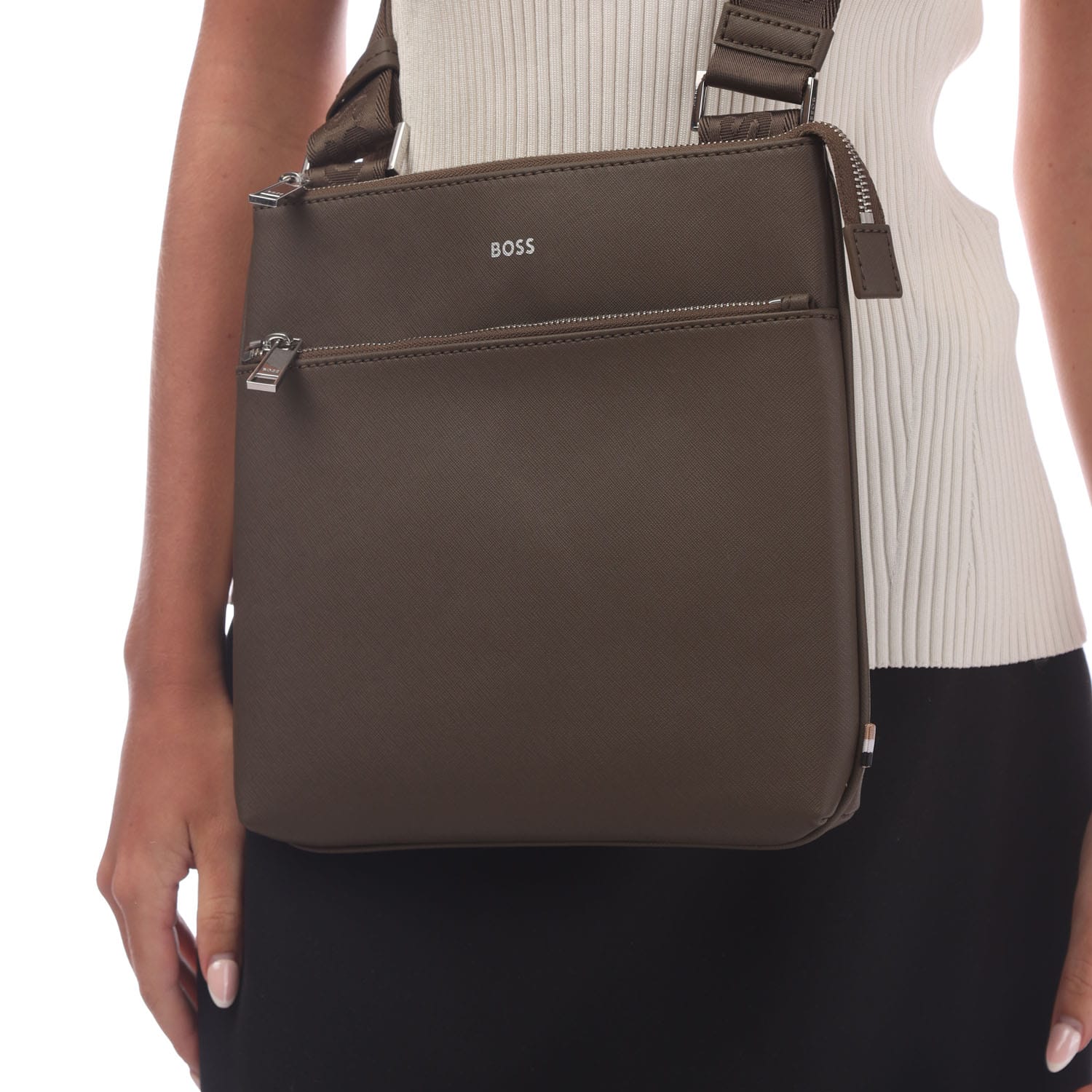 BOSS Zair Envelope Bag with Foil Print Logo in open green.